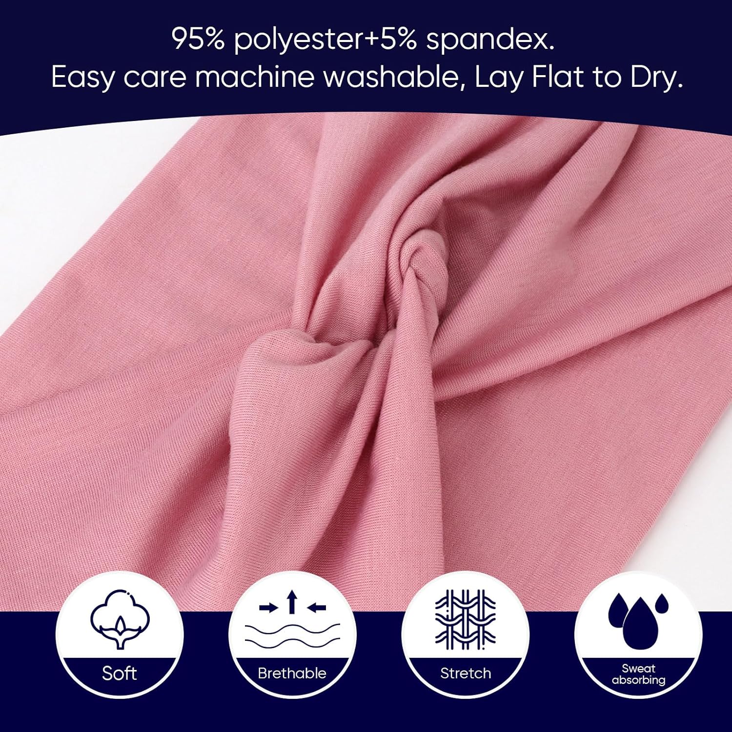 - Great Material - AQOKKA wide headbands for women are made of high-quality polyester and spandex. The fabric is breathable and soft with excellent sweat absorption to keep your forehead dry without bringing a stuffy feeling, which can keep your forehead dry and cool without bringing a stuffy feeling. These headbands have excellent support, you can wear them all day without pain.