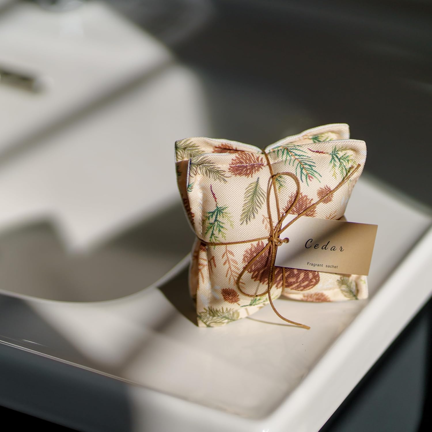 - Aesthetic Design: AUCUDA Cedar scented sachet with a pleasing flavor and a unique outlook, make sachet bag be a great decorations, wedding and party freshener for outfits in drawers and closets in Summer, everyone will appreciate packets' smell.