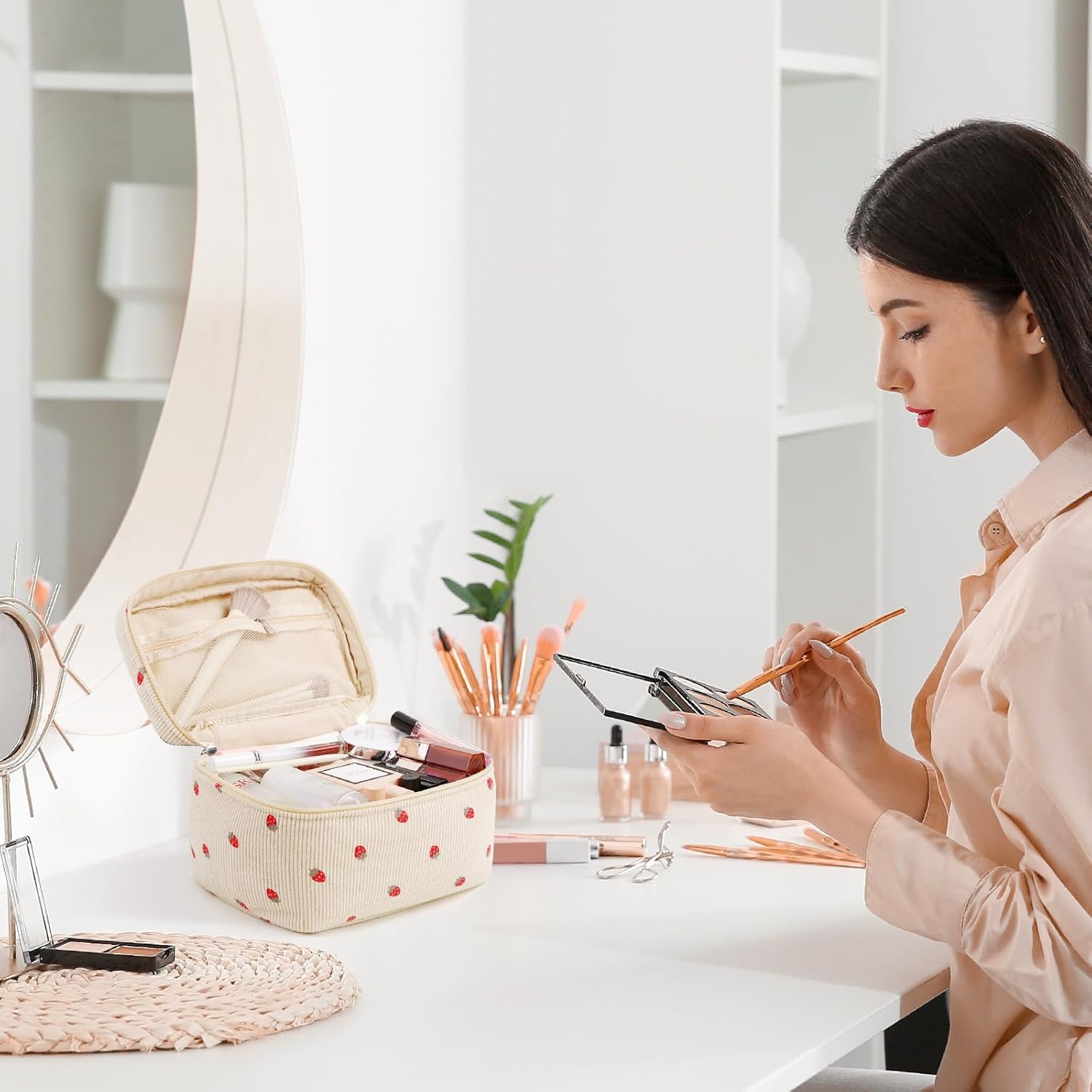 - ✅ Large Capacity: This spacious makeup bag (16cm x 16cm x 25cm) is perfect for travelers, fitting all your cosmetic essentials, skincare products, stationery, and more. Its compact design allows easy storage in handbags or suitcases.