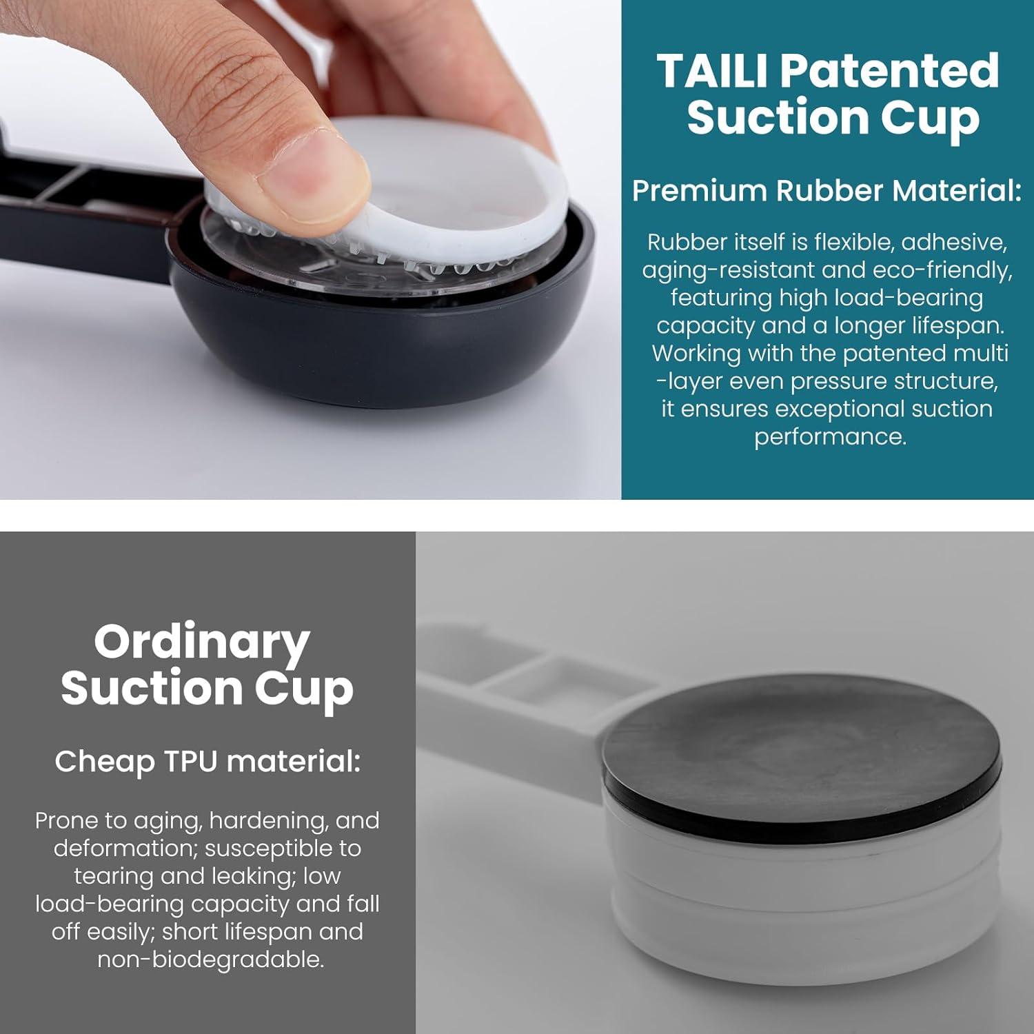 - Better life starts from TAILI: More and more customers are choosing suction cup products which is no damage to walls. Much more are choosing high-quality, long-lasting powerful suction cup products made by TAILI. If any of TAILI products did not meet your requirements, simply contact us and we'll help to solve it in 24 hours. Thanks