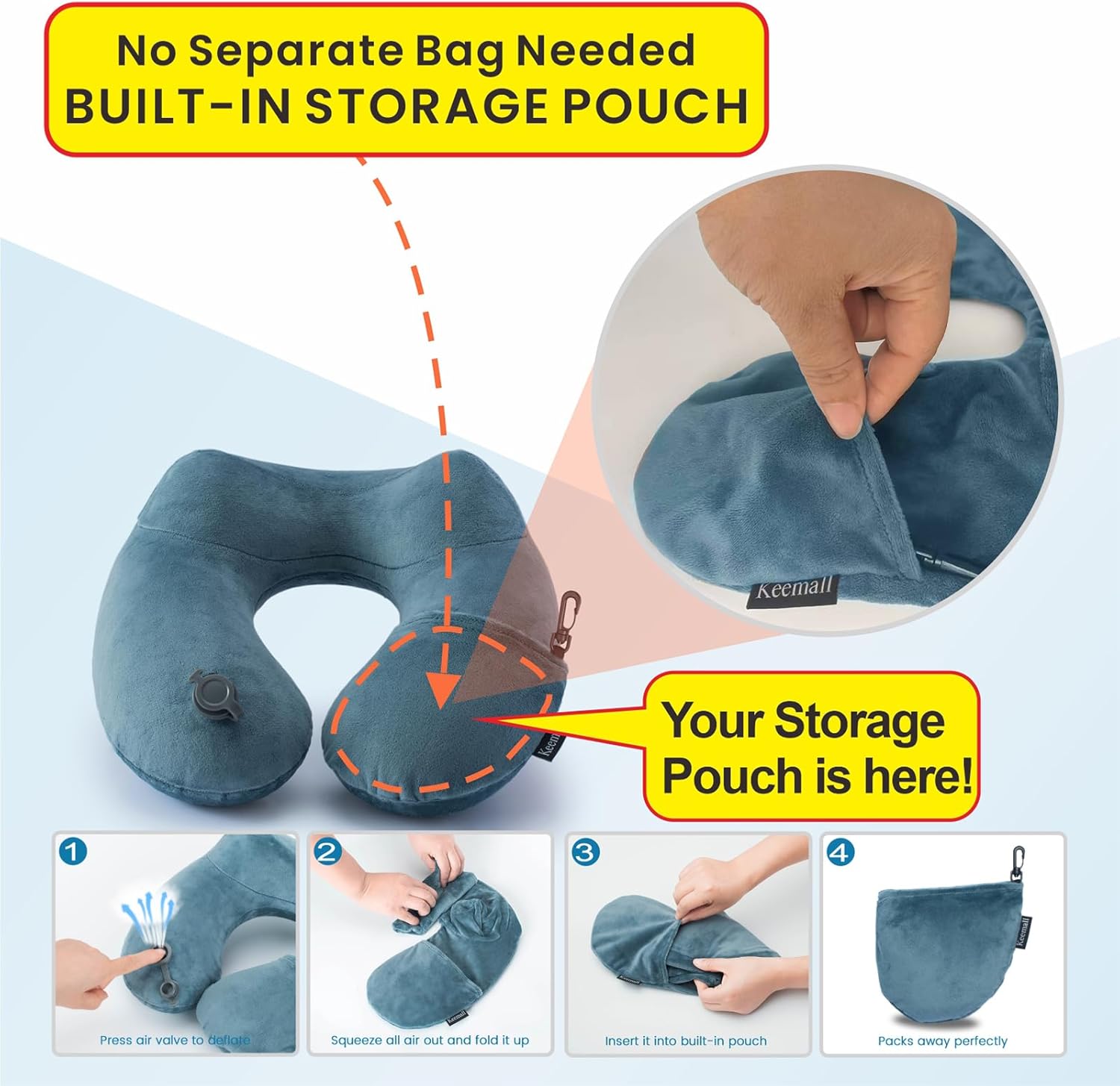 - Quick Inflation and Deflation: It inflates and deflates very easily. It folds into its own pocket ,which enabling you to set up or pack away the pillow quickly and efficiently, saving time and effort