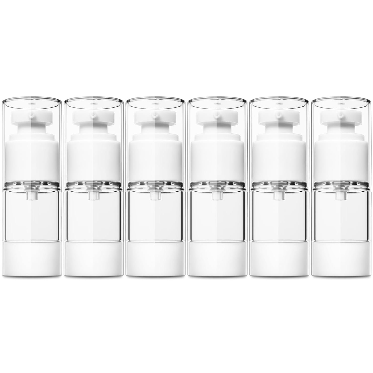 TUZAZO 6 Pack 0.5 Oz/15 ML Airless Pump Bottles, Clear Plastic Travel Size Pump Bottles, Refillable Vacuum Cosmetic Containers Lotion Dispenser for Foundation, Cream, Shampoo