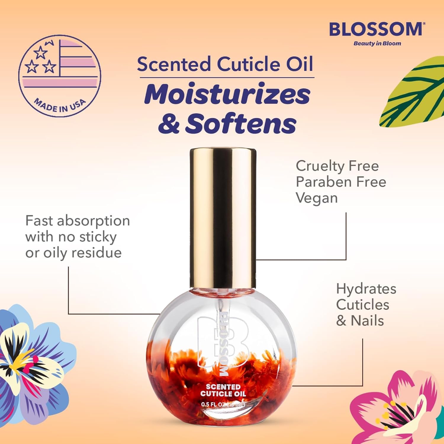 - SCENTED CUTICLE OIL FOR NAILS: Choose from a wide variety of scented Blossom cuticle oil for nails and cuticle care, FLORAL (lavender, hibiscus, jasmine, rose, honey suckle & spring) FRUITY (cherry, grape, orange, strawberry, etc) GOURMAND (Pumpkin Spice, Almond Biscotti, Chocolate Truffle, etc) or Amazon Exclusive (Coconut, Lemongrass, Lily, Raspberry, Watermelon) scents in 0.5oz or 1oz bottles. Each nail oil is infused with real flowers and makes the perfect beauty accessory