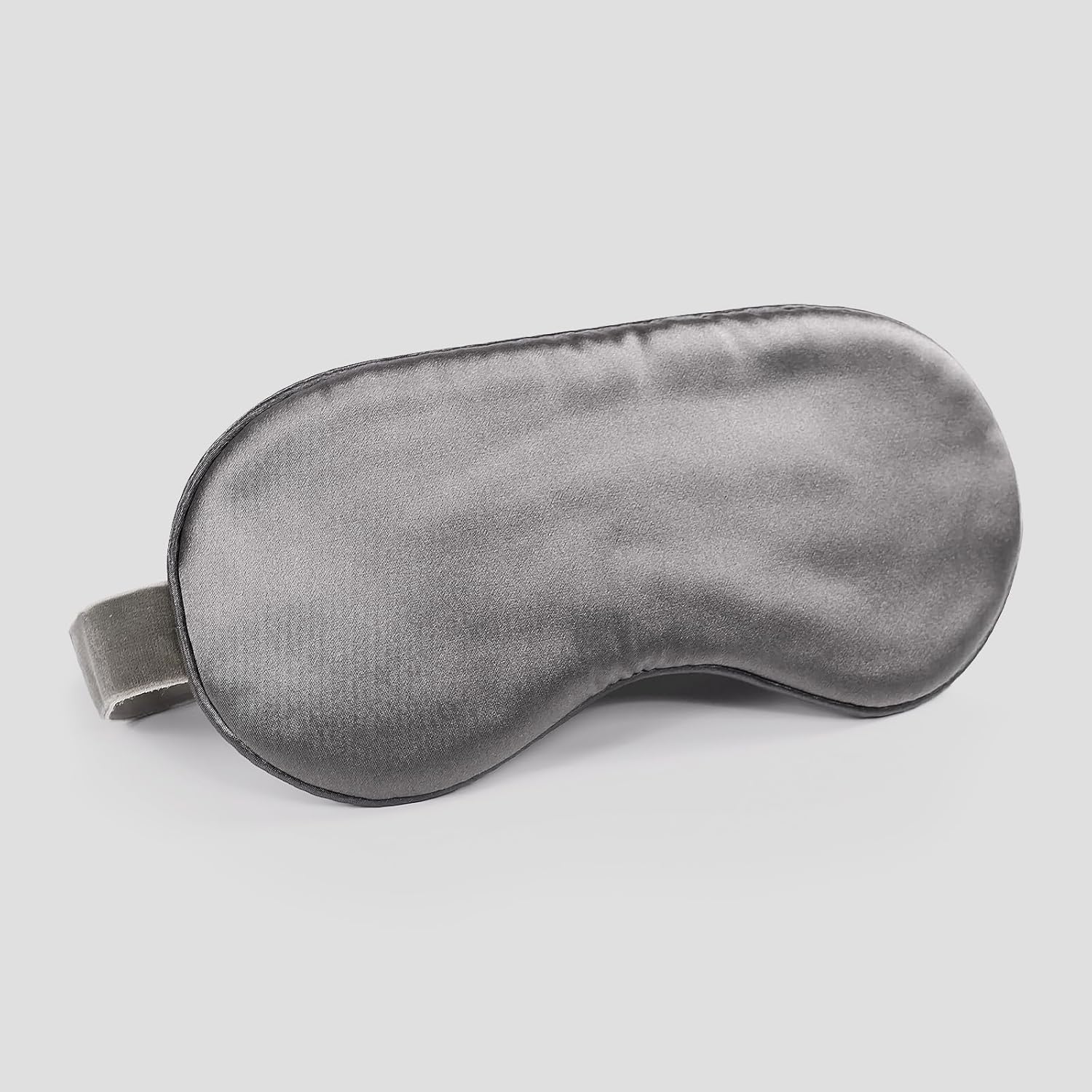 Luxury Silk Sleep Mask with 22mm Mulberry Silk, Velvet Elastic Band, Heat Therapy Pocket, and Travel Pouch, Grey Color