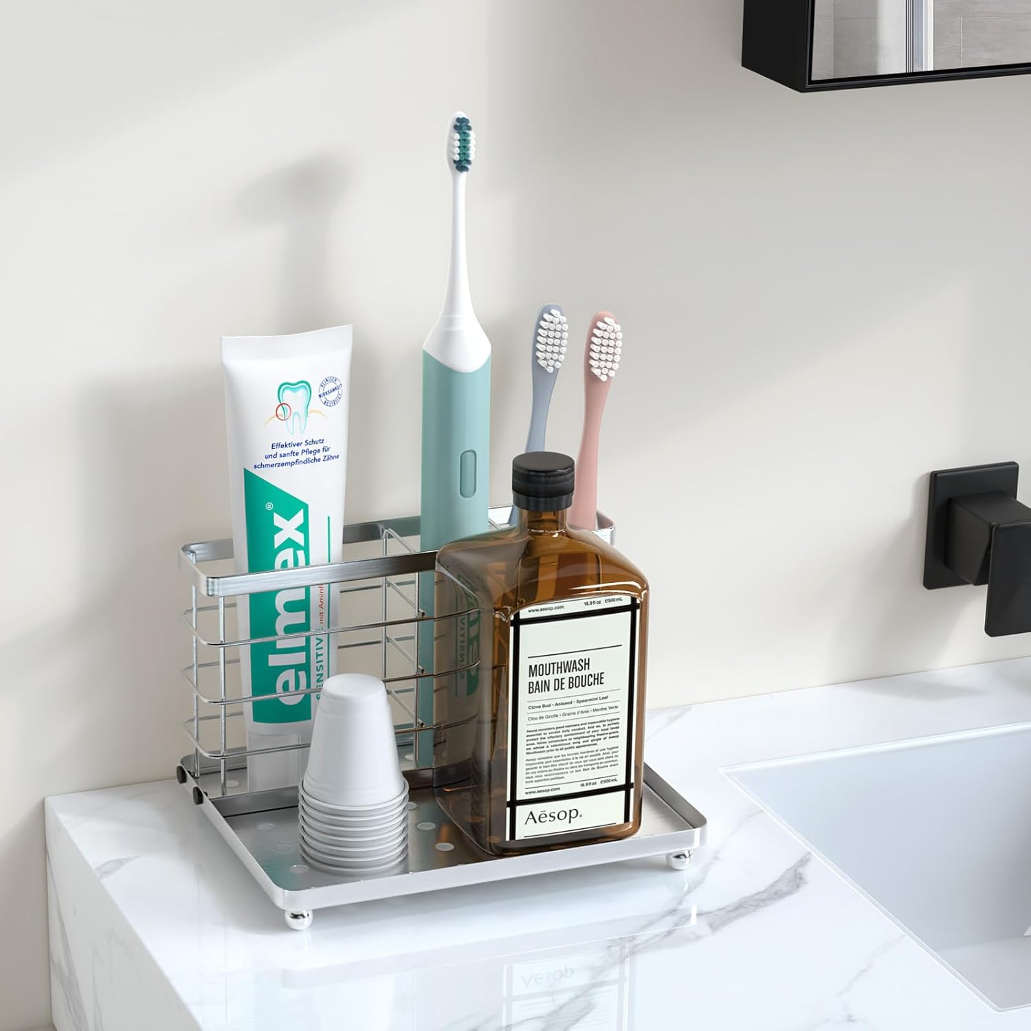 - 304 Stainless Steel: Our toothbrush organizer is made of 304 stainless steel, not easy to rust and deform. This holder can safely store toothbrushes and other bathroom supplies for a long time. And the surface is smooth and anti-fingerprint, easy to clean.