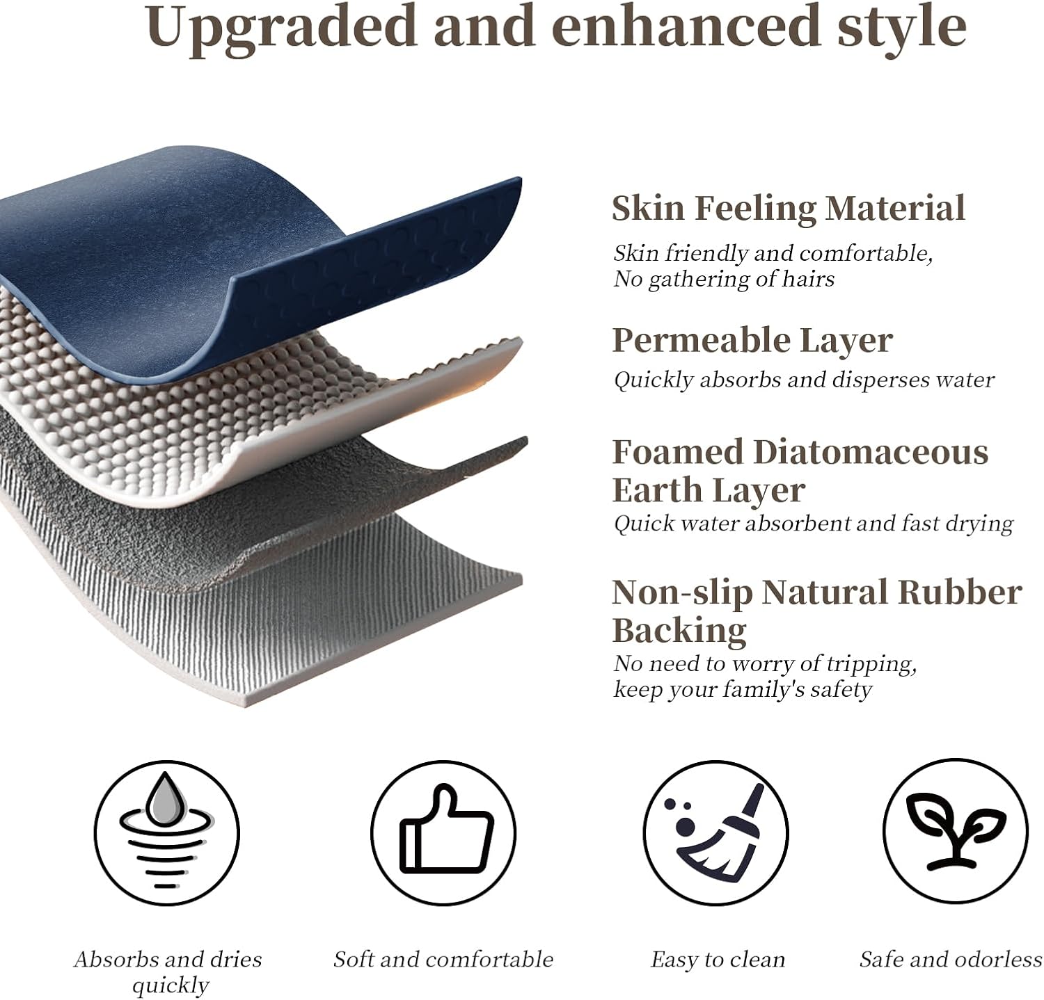 - 【Quick Absorbing & Fast Drying】 The stone bath mat for bathroom is a flexible stone bath mat made of diatom mud material, which is easier to dry than other normal plush bath mats. This water absorbing bath mat is designed to absorb water from wet feet immediately, watermarks will disappear within few minutes. Enjoy a dry and comfortable experience after your shower.
