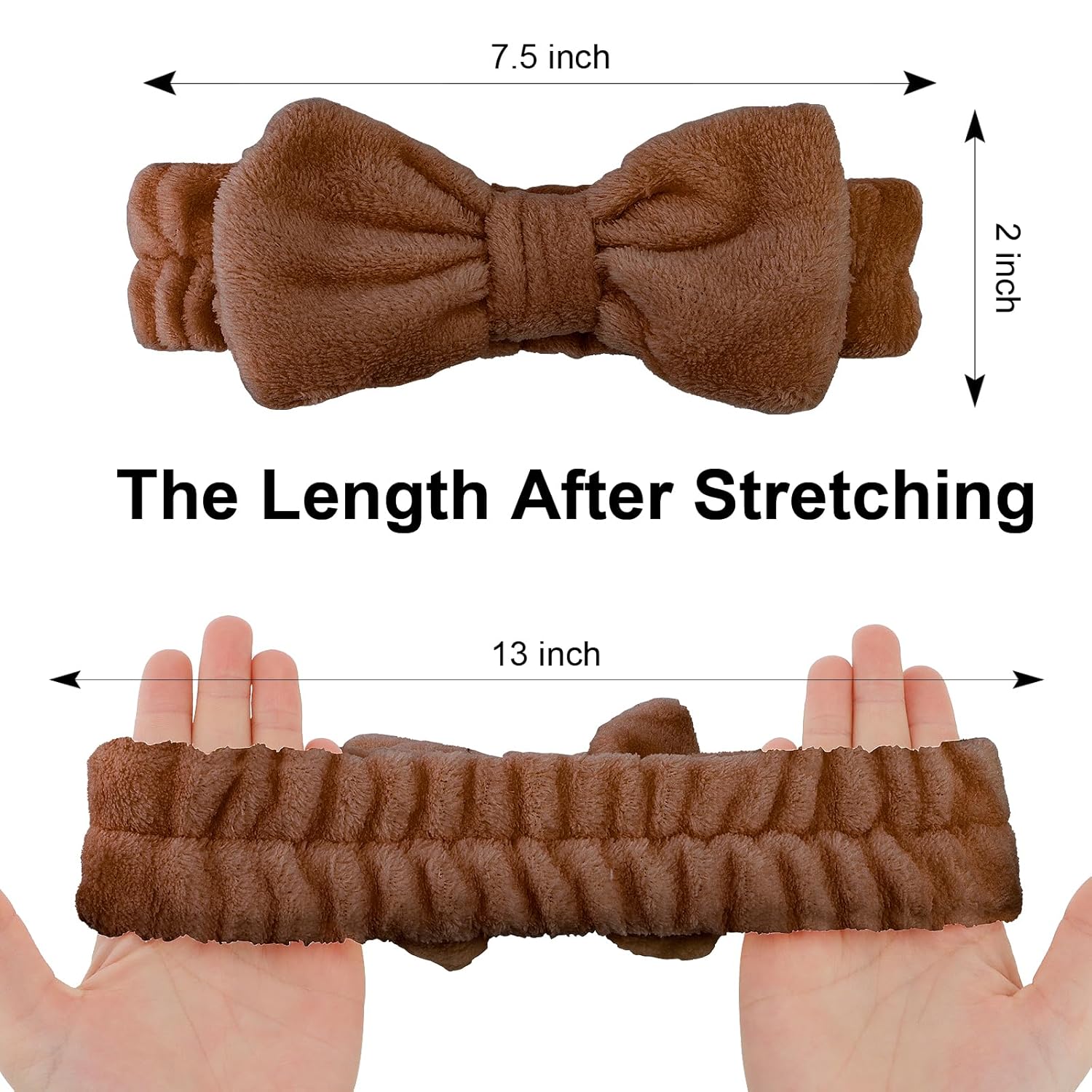 - Product Size:The spa headband can be used for adults as well as for children.The soft texture does not harm to children's skin.The size is about 7.5 inch length and 2 inches width, can be stretched to 13 inch, easily to fit your head size