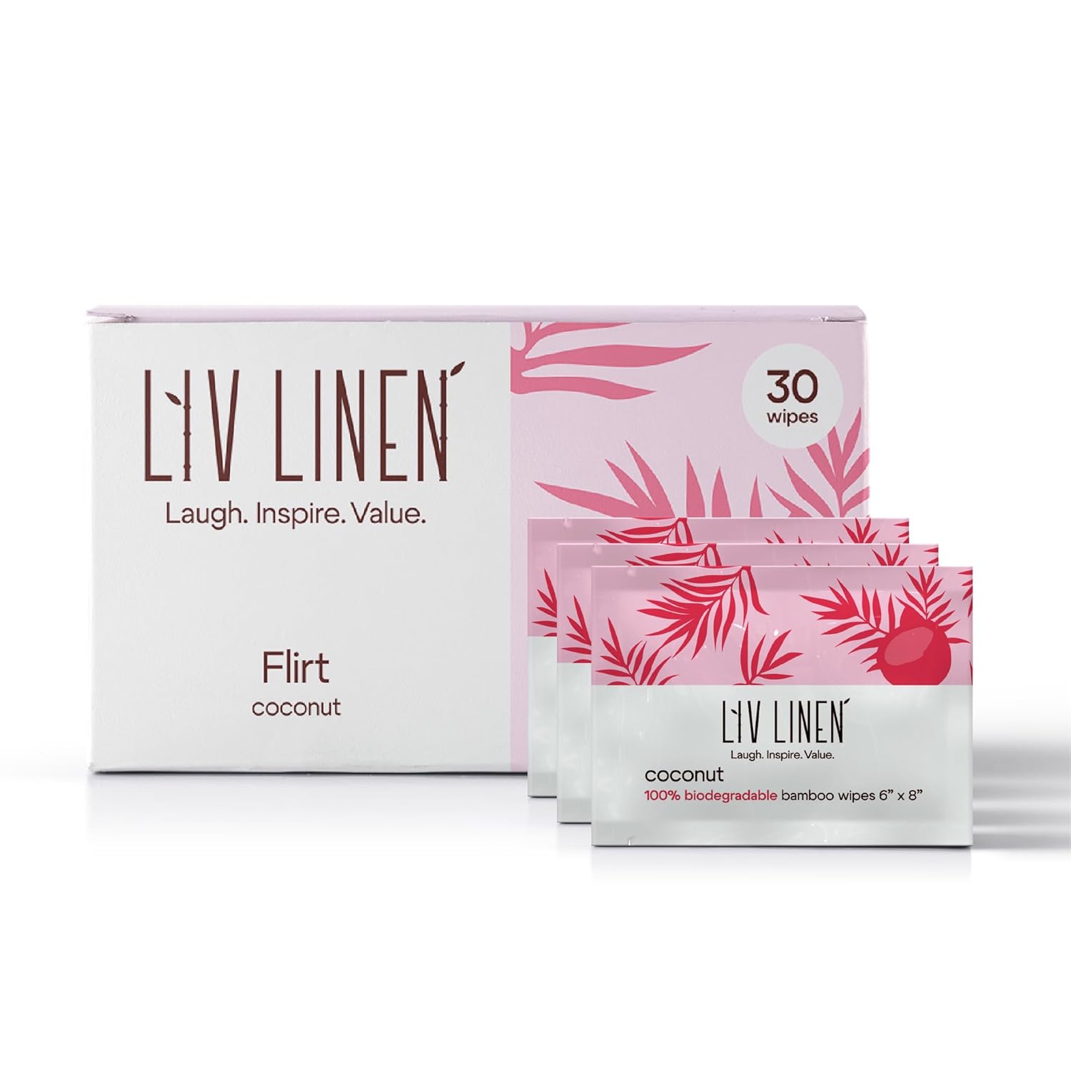 Bamboo Deodorant Wipes - 30 count - Individually Packaged - Aromatherapy Scent (Coconut)