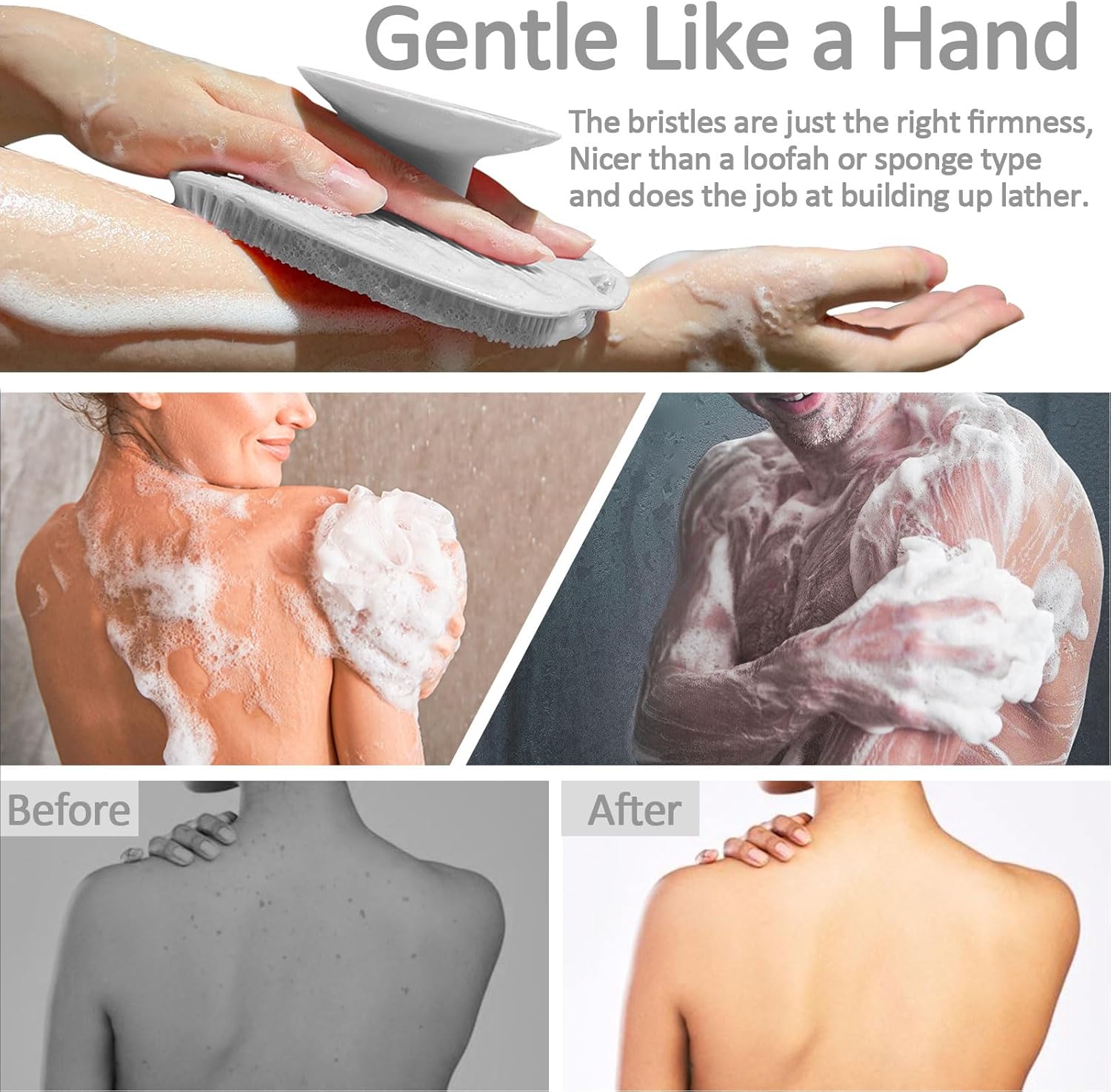 Soft Silicone Body Scrubber, Gentle Like a Hand Exfoliating Your Skin and Build Up Lather Easily, Back Large Suction Cup Easy to Store, Long-Lasting & Deep Clean (Gray)
