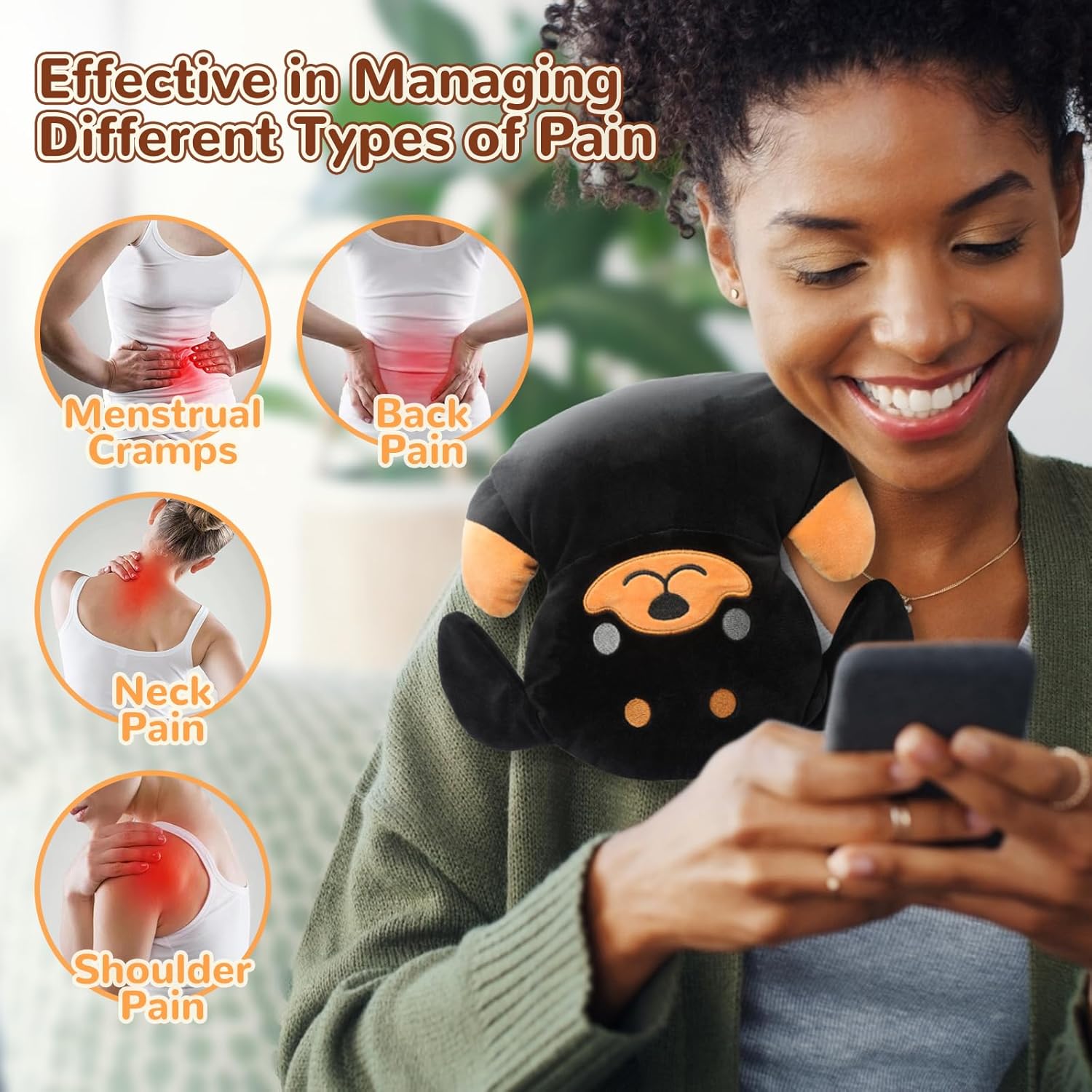 - Highly Recommended by Physical Therapists: The heating pad releases moist heat which promotes blood circulation, effectively reducing the pains in your back, neck, sore joints and muscles. What’s more, it can release the uncomfortableness aroused by menstrual cramps, perfect for your uneasy days. If you prefer to the cold compress, simply put it into the fridge and enjoy a cool and refreshing massage. It would definitely be a good companion to relieve the bruises and swellings on your skin.