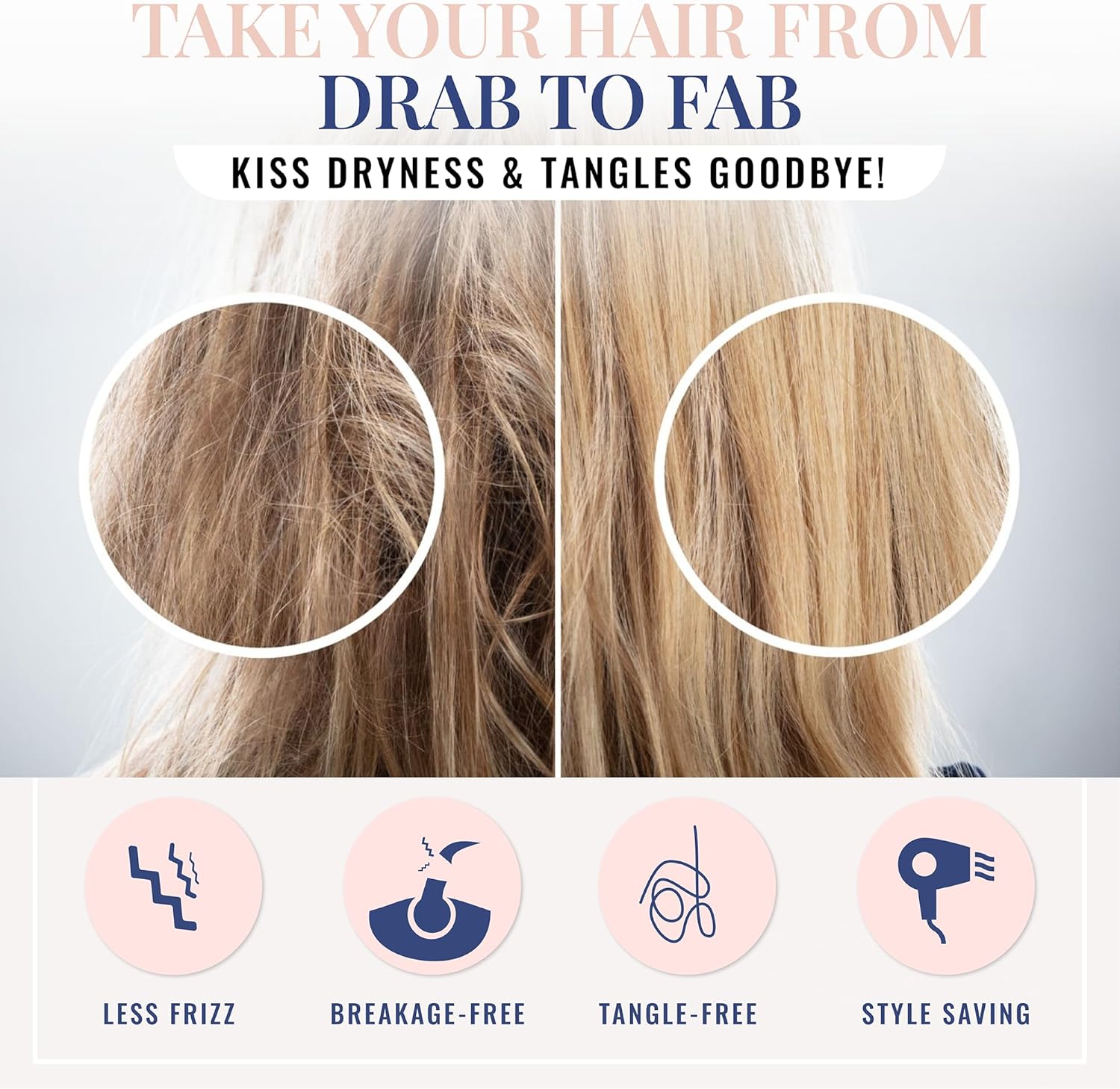 - TAKE YOUR HAIR FROM DRAB TO FAB: No more bedhead or tired hair! Kiss dryness and tangles goodbye! Blissy prevents the tugging and pulling provided by ordinary pillowcases. Plus the non-absorbent surface helps to maintain your hair’s naturally producing oils.