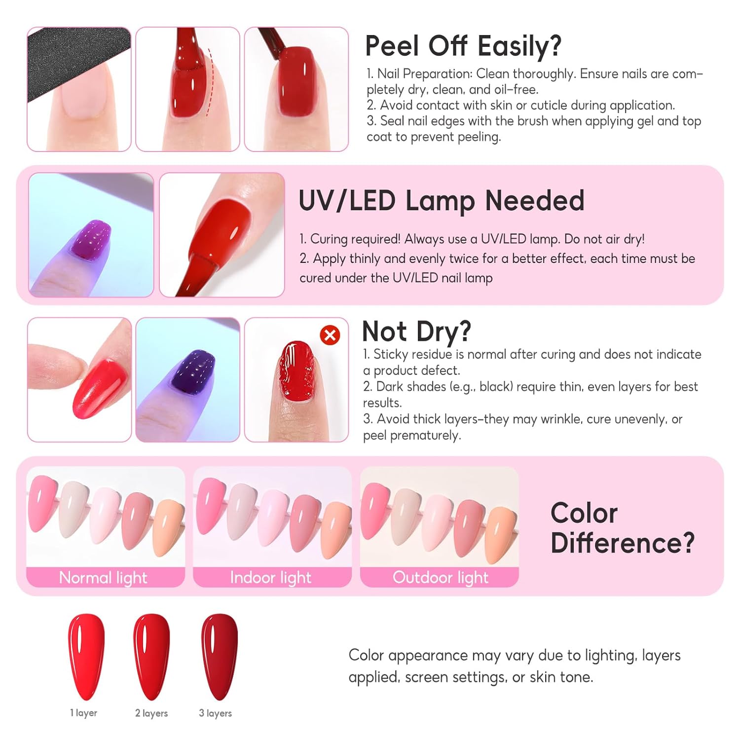 - 【Easy Application and Highly Pigmented】 Our gel polish are made with natural resins, minerals and safe ingredients, features flawless application, which is smooth and easy to spread, especially for beginners. The gel prevents yellowing or dulling, it's natural, sturdy and flexible. Please note: due to different monitor settings and electronic devices, colors may differ