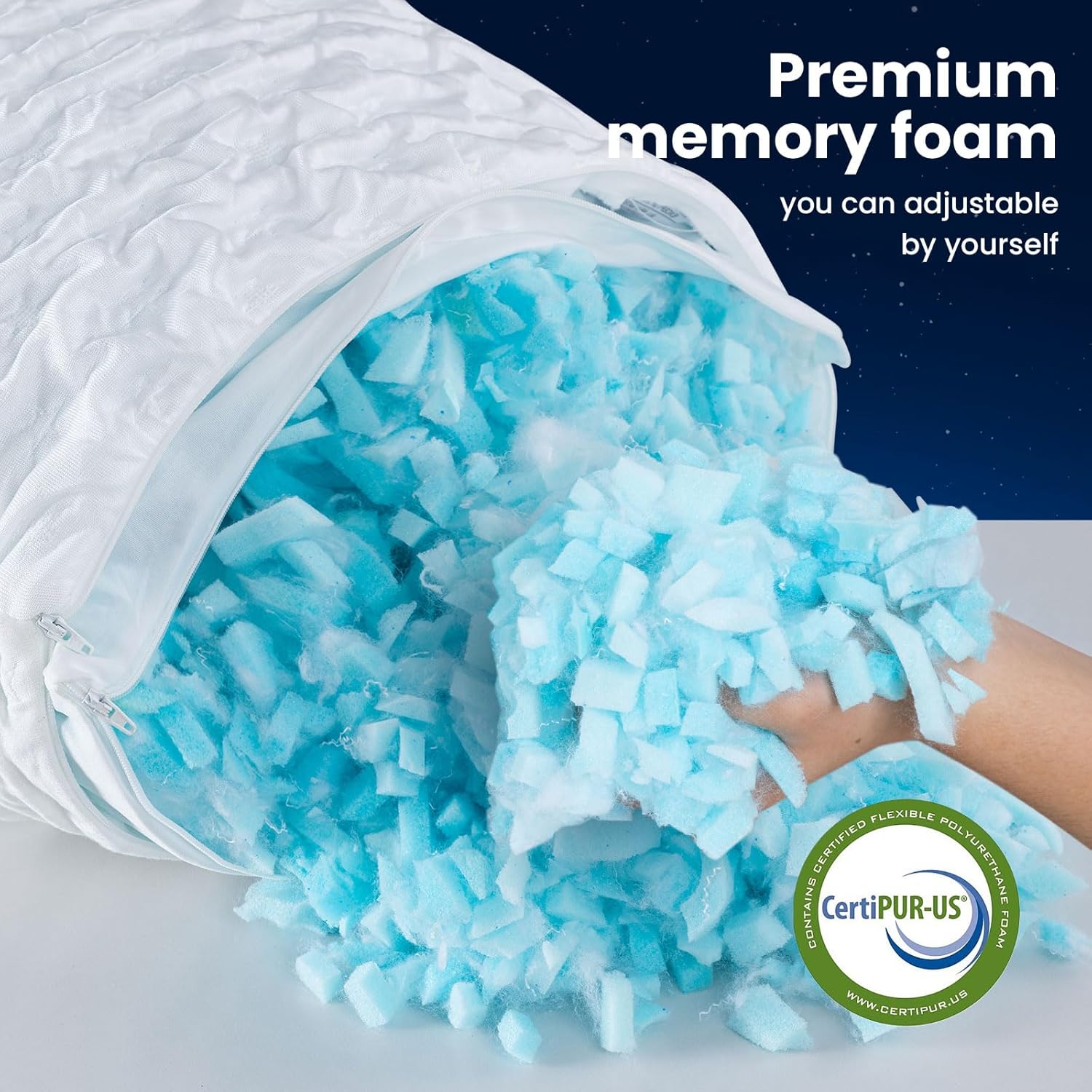 Body Pillow for Side Sleeper with Neck and Shoulder Pain,Adjustable Shredded Memory Foam Pillows, Cooling Pillow for hot Sleepers with Washable Cover, Bed Pillows for Adults, Original White