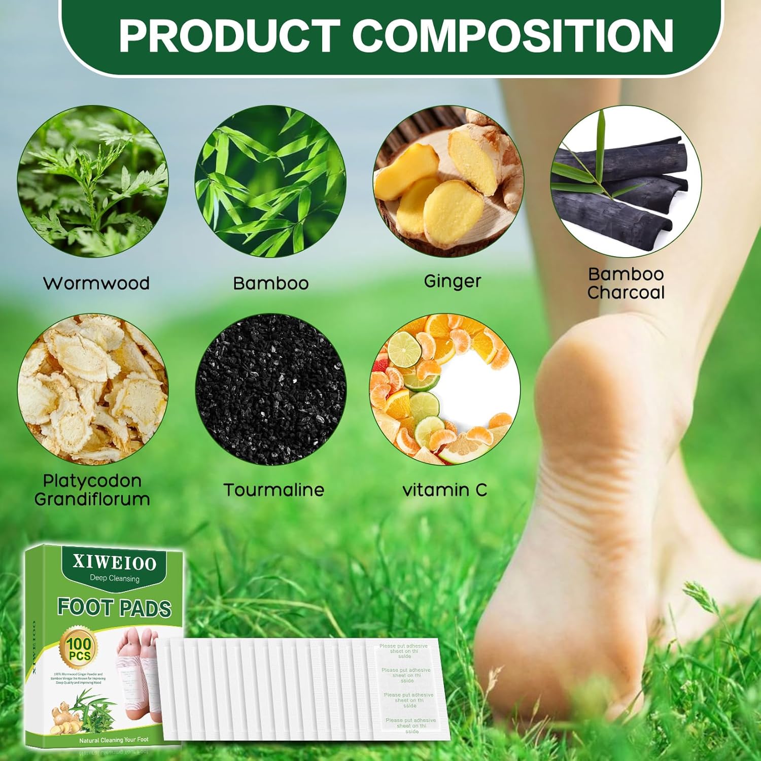 XIWEIOO100 Pack Foot Pads Paches,feet Deep Cleansing Bamboo Foot Paches, Ginger Foot Pads Foot Care Pads |Natural Bamboo Charcoal Ginger Oil Care Patch