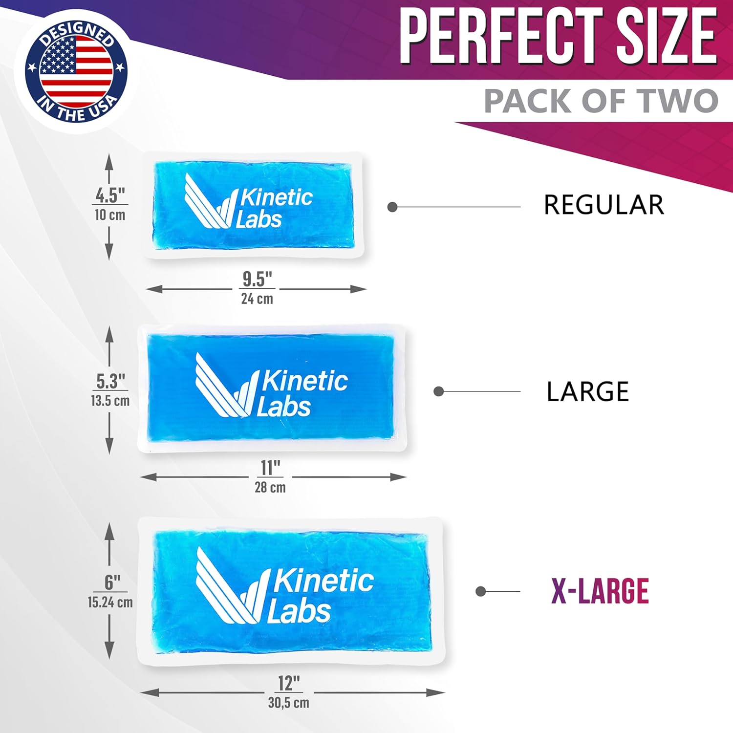 Reusable Gel Ice Packs for Injuries by Kinetic Labs (2 Pack) - Hot Cold Packs for Injuries 12" x 6" - Flexible Ice Packs for Back Head Knee Shoulder Neck Ankle Elbow Feet Headaches Surgery (X-Large)
