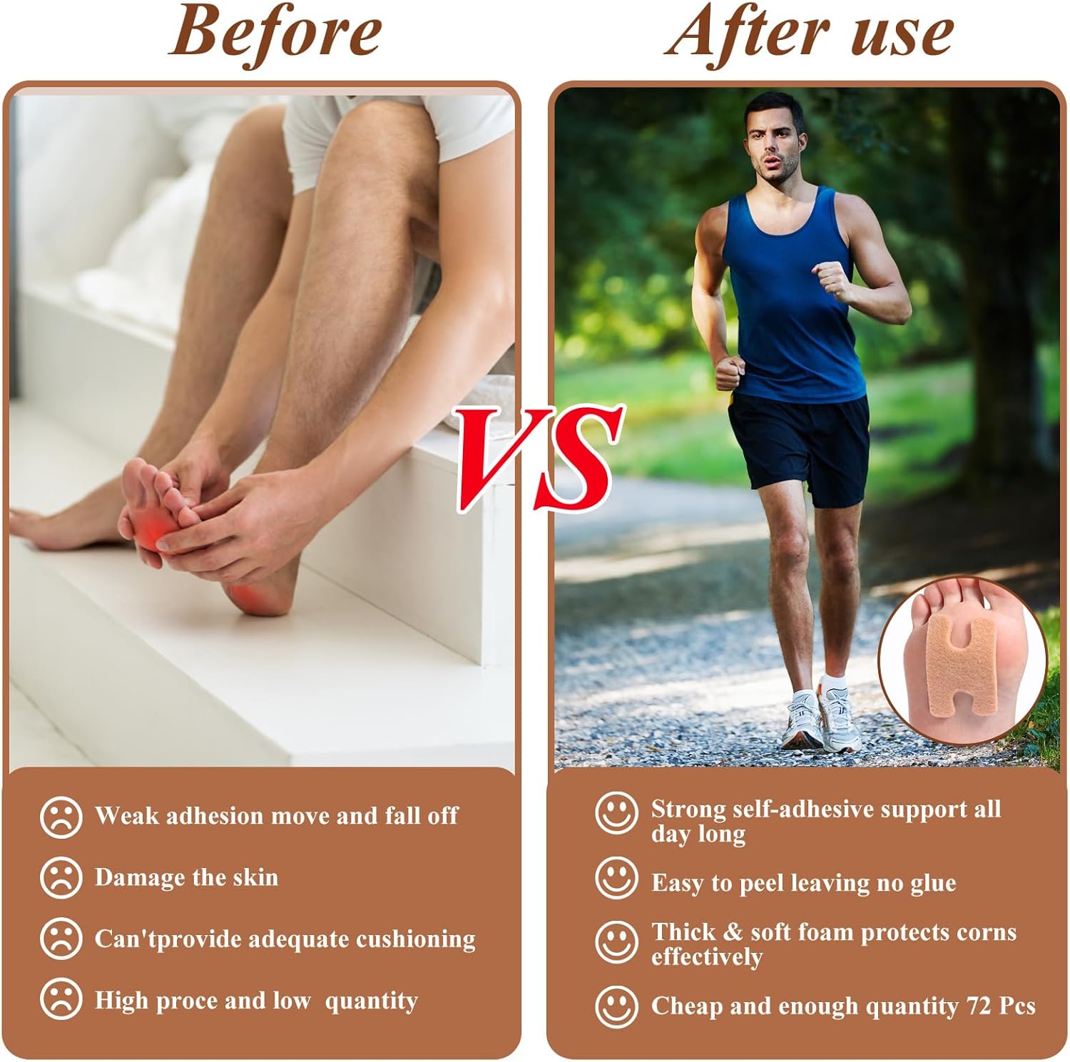 - Versatile Sizing for All Foot Areas: 72-pack foot pads are thoughtfully sized at 2.8 x 1.8 x 0.12 inches, making them versatile enough to cover a wide range of foot areas, including the soles, heels, and sides. Their lightweight and flexible design ensures they conform to the unique contours of your feet, providing targeted relief where it’s needed most.