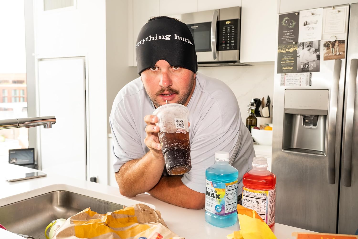 Huggs Migraine Relief Cap - Everything Hurts - Cooling Gel Head Wrap, Cold Compress Cap for Headache, Stress, & Tension