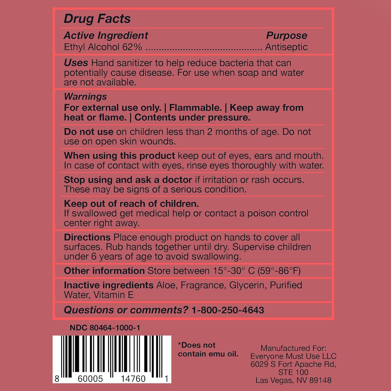 - 5. Suitable for all ages: EMU is safe for both children and adults. Whether you need hand sanitizer for kids or a hand sanitizer keychain for everyday use, EMU is a reliable choice. It's as reliable as Honest Hand Sanitizer Spray and as effective as 24-Hour Disinfectant Sanitizing Spray.