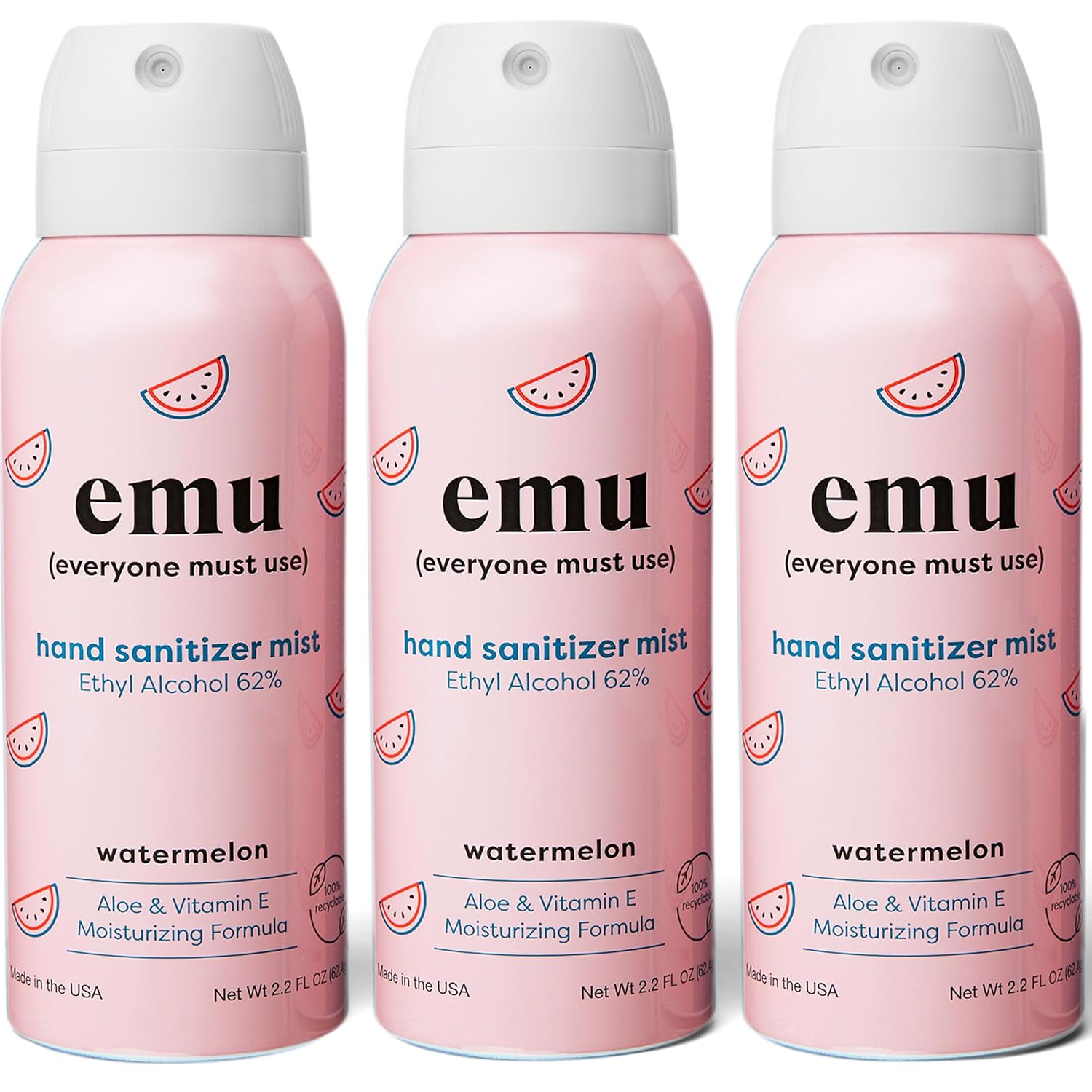 EMU (EVERYONE MUST USE) Hand Sanitizer pocket spray, Travel size 2.2oz. Cleanses Your Hands, Hydrating. Hand soap bulk. 24-hour disinfectant sanitizing. Made in USA (Watermelon_3)