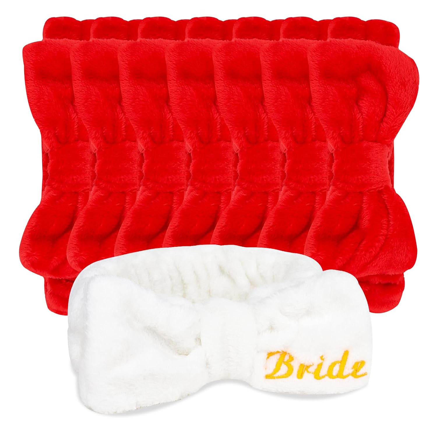 - The perfect bachelorette themed party favors: 1 white bridal spa headband +7 red bridesmaid spa headbands.