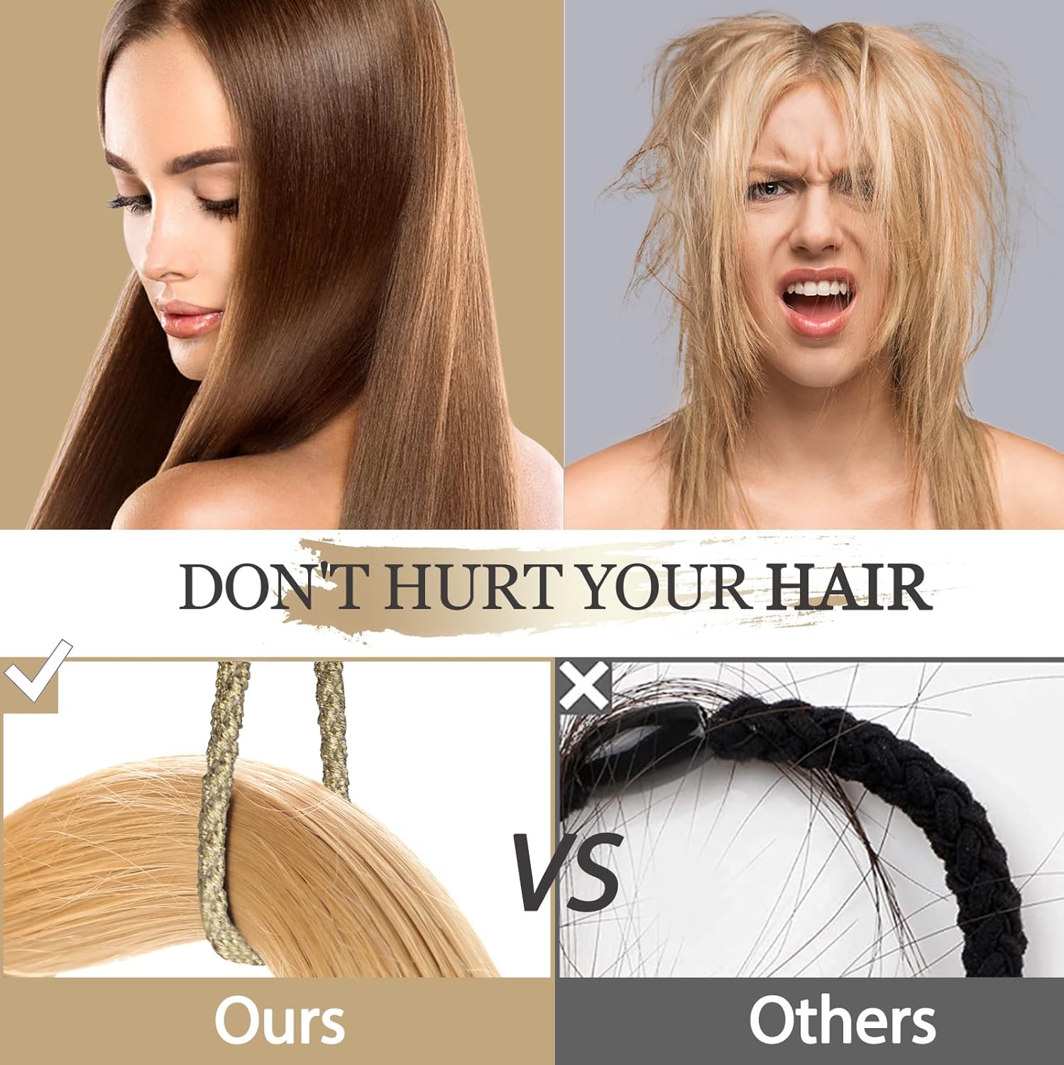 - ④【High elasticity】: Our hair band can be stretched to 7.8 inches, which is very elastic and strong. It won't break easily.