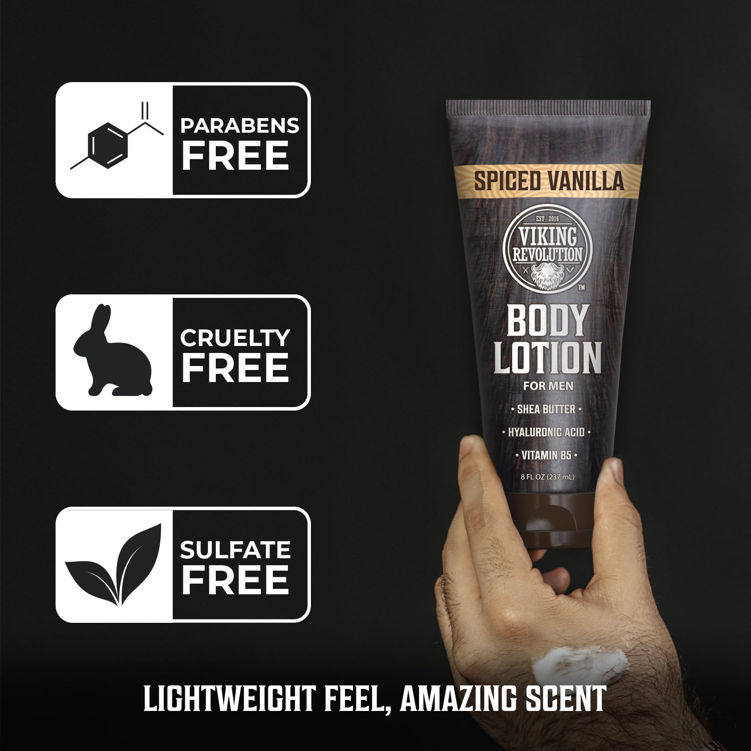 Viking Revolution Spiced Vanilla Body Lotion for Men – Mens Lotion for Dry Skin with Shea Butter, Hyaluronic Acid and Vitamin B5 – Nourishing Mens Body Lotion for Hydrated and Smooth Skin - 8oz,1 Pack