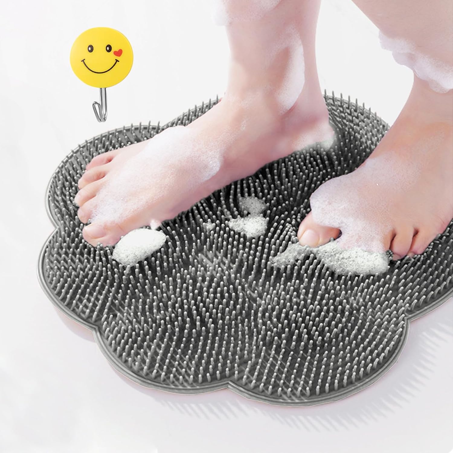 Foot Scrubber in Shower,Shower Foot Scrubber Mat,Silicone Body Scrubber with Suction Cups,Bath Feet Scrub Mat with Storage Hook(Gray)