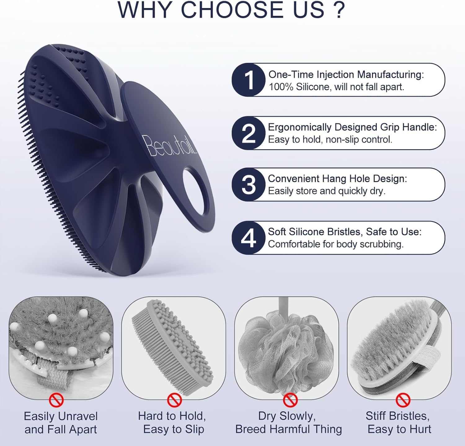 - MORE HYGIENIC THAN TRADITIONAL OPTIONS: Unlike loofahs, washcloths, or exfoliating sponges, the BEAUTAIL silicone body scrubber is crafted from non-porous, self-cleaning silicone that resists water absorption and dries quickly. This means no lingering moisture, reducing the risk of bac-teria or mo-ld buildup for a cleaner, fresher shower experience.
