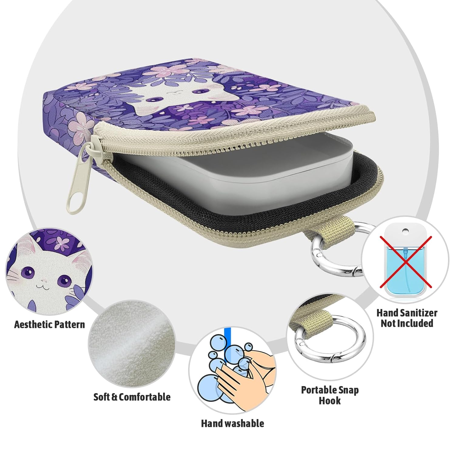 Cat Hand Sanitizer Spray Case, Cute Hand Sanitizer Holder Zippered Pouch, Fashion Accessory with Snap Hook for Glow Mist and Power Mist 1FL OZ