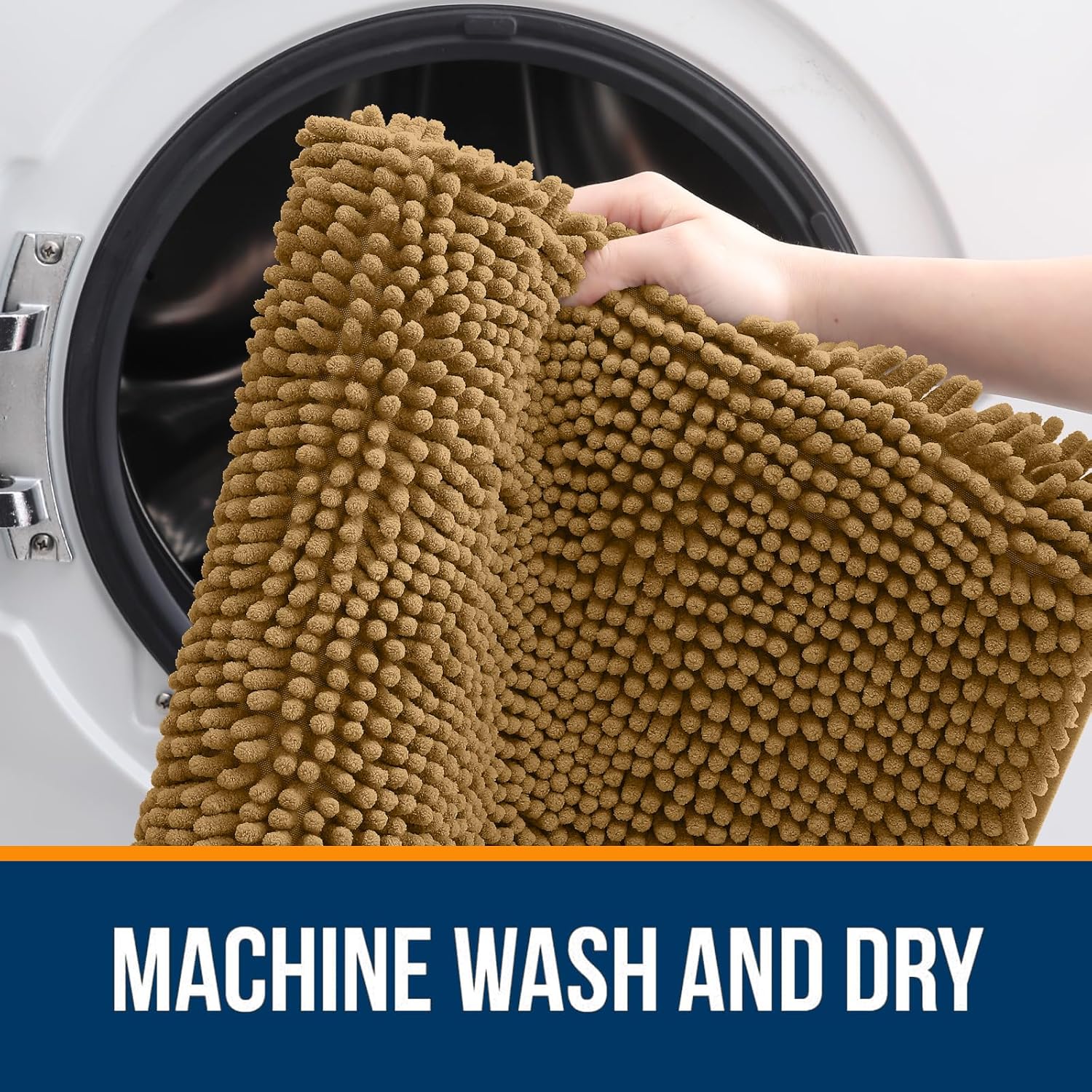 OLANLY Bathroom Rugs 44x24, Extra Soft Absorbent Chenille Bath Rugs, Rubber Backing Quick Dry, Machine Washable Bath Mats for Bathroom Floor, Tub and Shower, Home Decor Accessories, Ochre