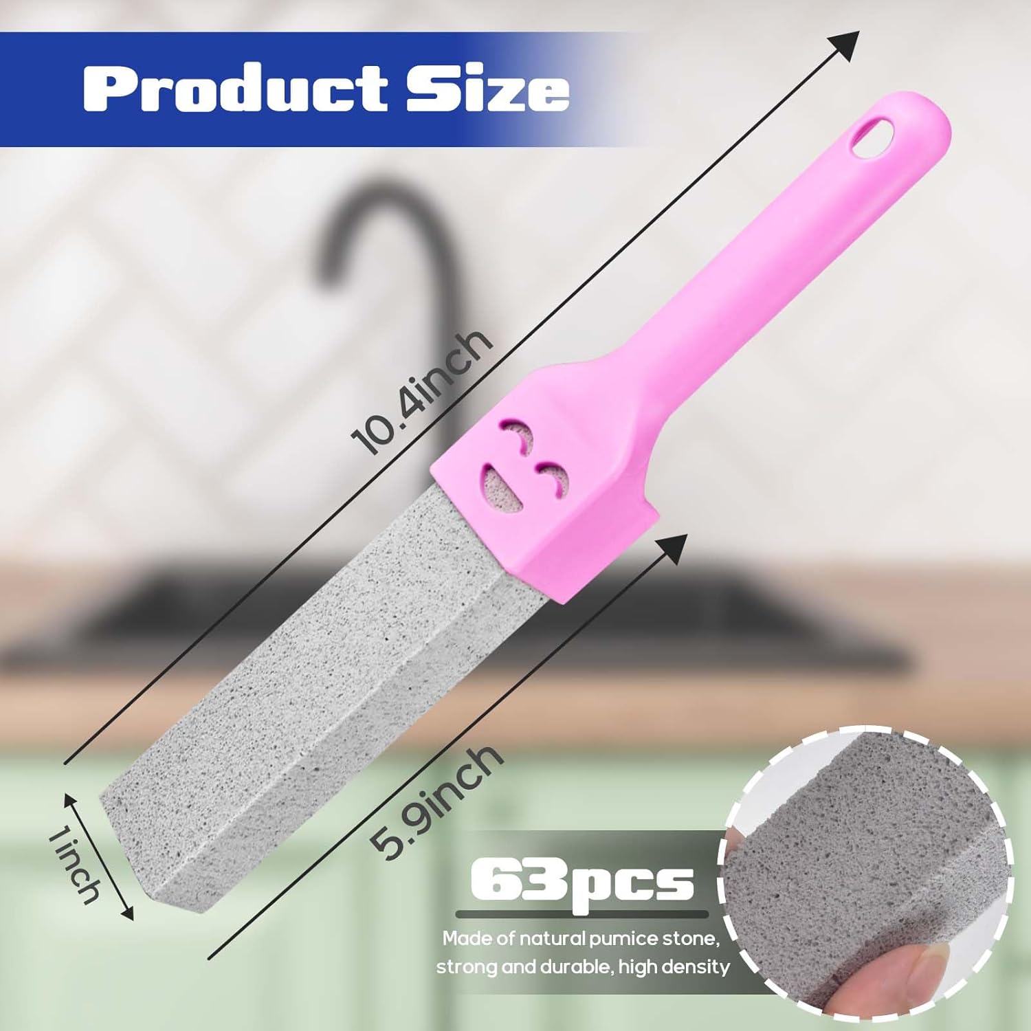 - Easy to Grip Handle: The toilet pumice stone comes with a handle for easy handling, transforming the strenuous toilet cleaning task into a breeze. There is a hole at the top of the handle, you can hang it on the hinge clip for storage after using