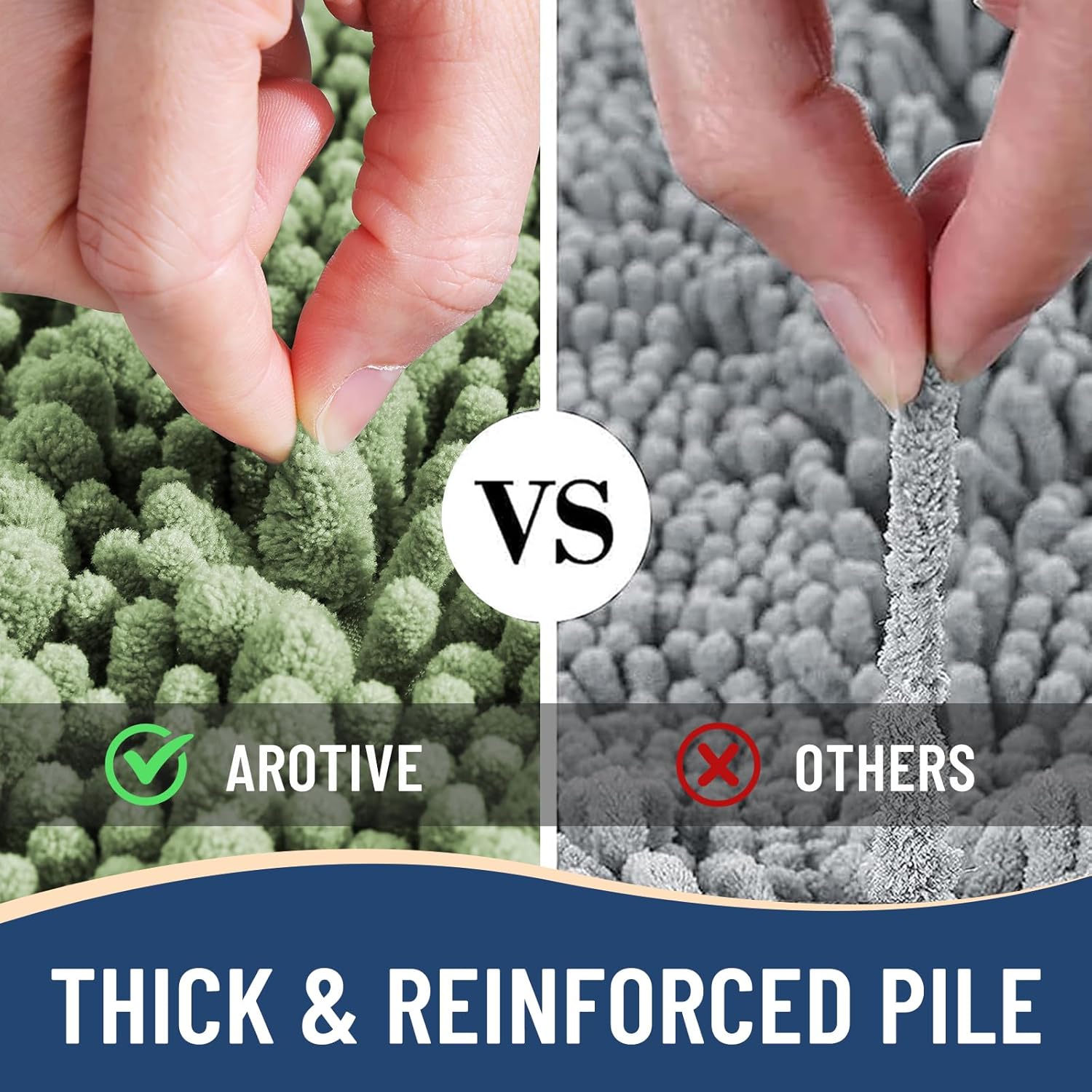 Arotive Luxury Chenille Bathroom Rug Mat, Extra Soft Thick Absorbent Shaggy Bath Rugs, Non-Slip Machine Wash Dry, Plush Bath Mats for Bathroom, Shower and Tub, 44x24, Sage Green