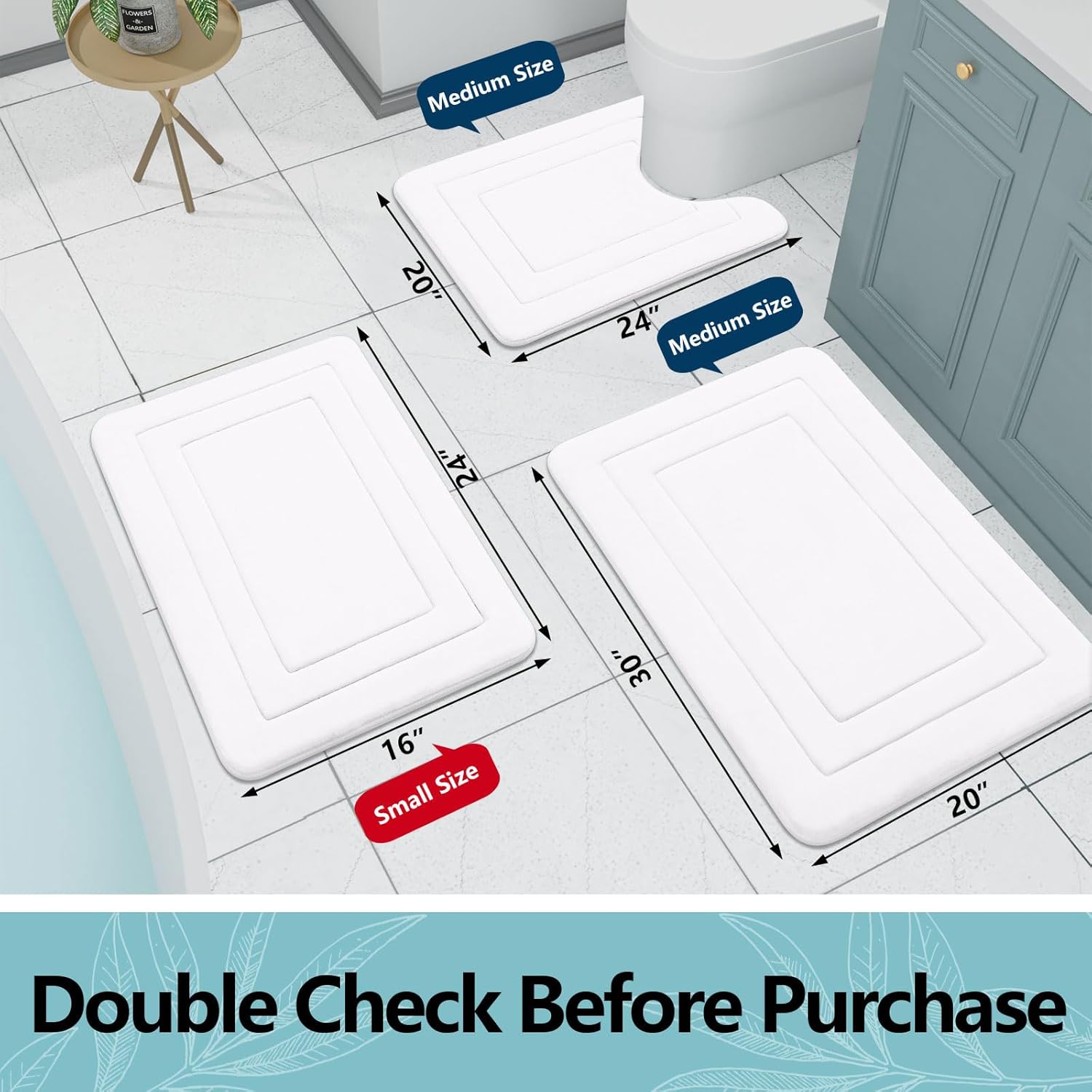 - Water Absorption : Our Memory Foam Bathroom Rug Mat features a soft flannel layer that has notable water-absorbing capability, ensuring a dry surface on the bathroom mat while keeping feet dry. Enjoy the convenience of a quick-drying and reliable bath mat