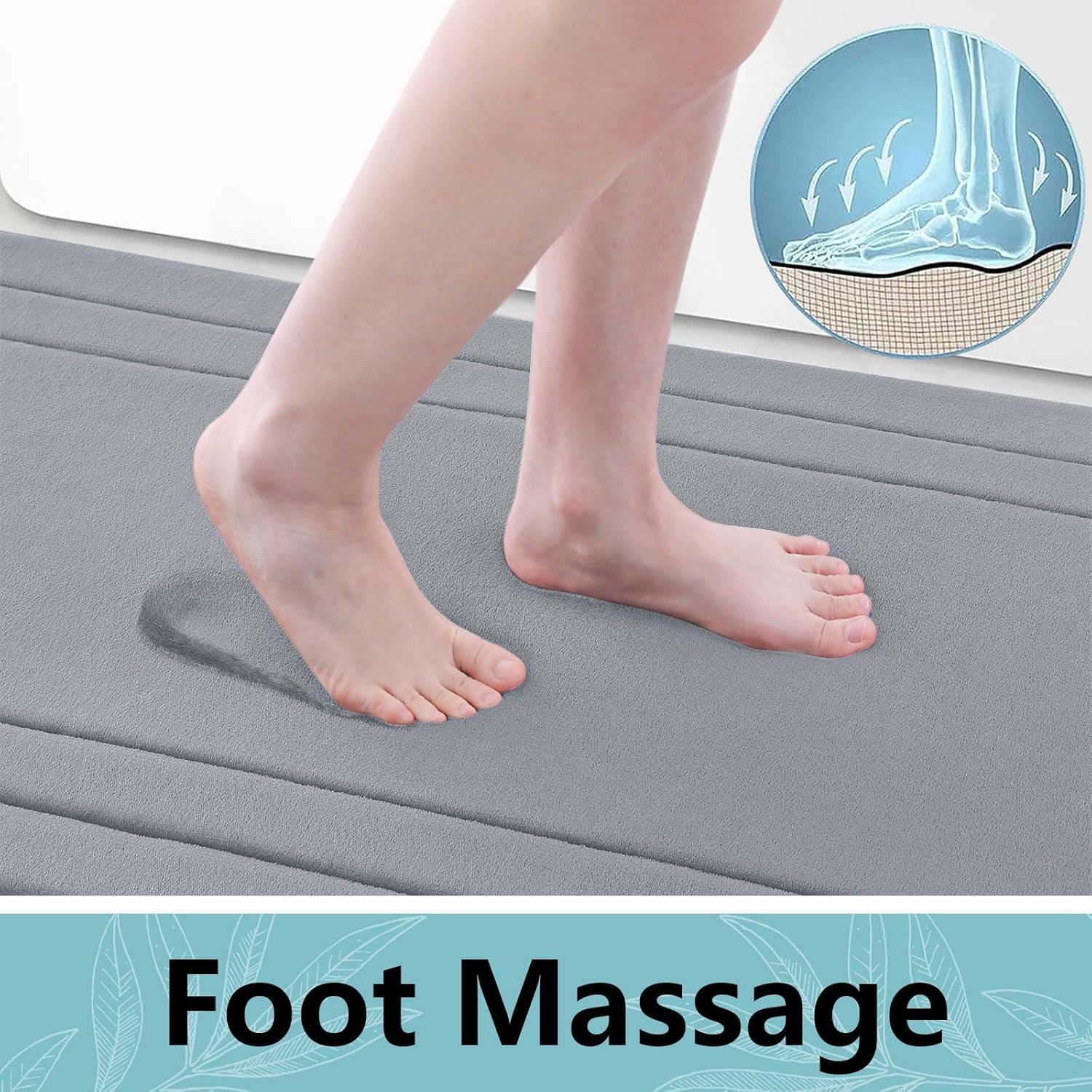 - Water Absorption : Our Memory Foam Bathroom Rug Mat features a soft flannel layer that has notable water-absorbing capability, ensuring a dry surface on the bathroom mat while keeping feet dry. Enjoy the convenience of a quick-drying and reliable bath mat