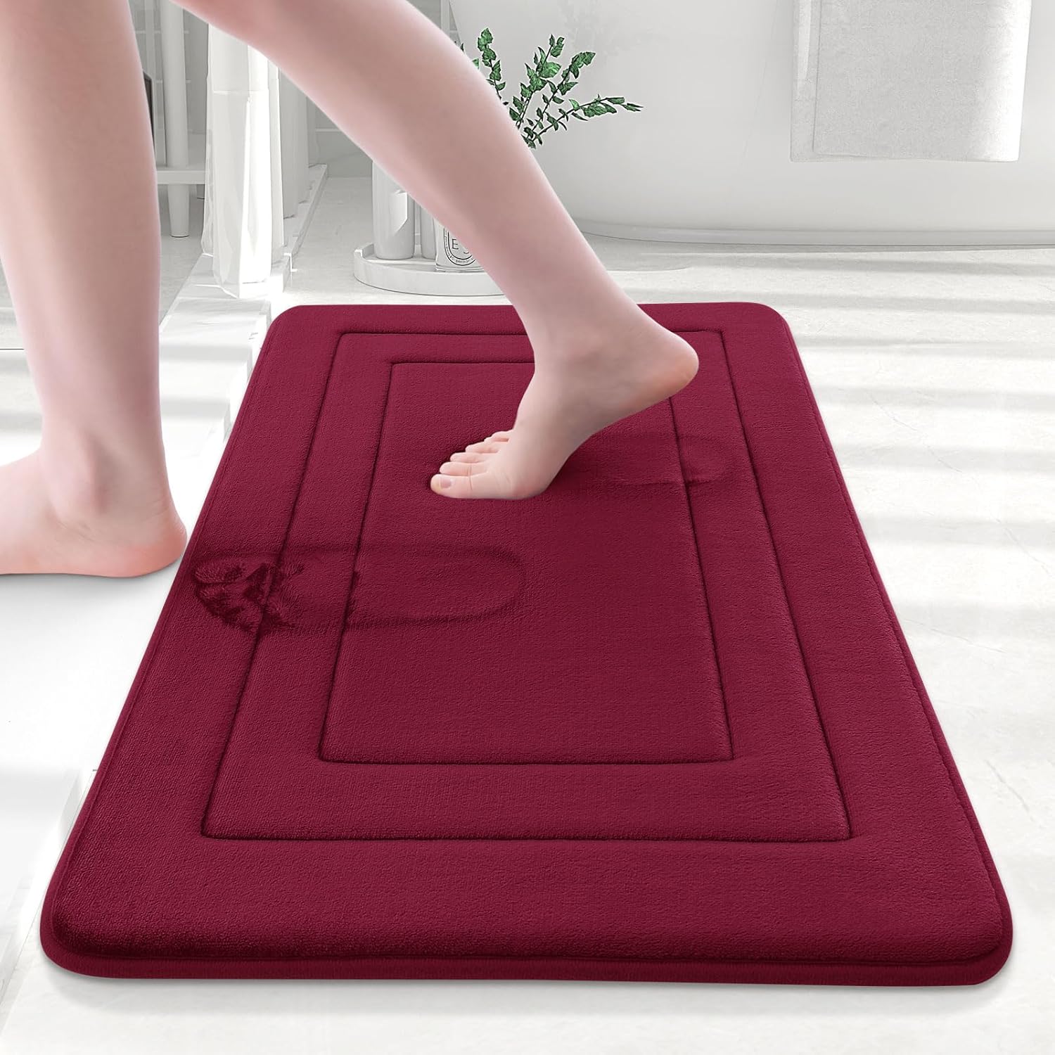 Arotive Memory Foam Bathroom Rug Mat 24x16, Ultra Soft and Absorbent Bath Mat, Machine Wash Dry, Comfortable Bath Rug Carpet for Bathroom Floor, Tub and Shower, Burgundy