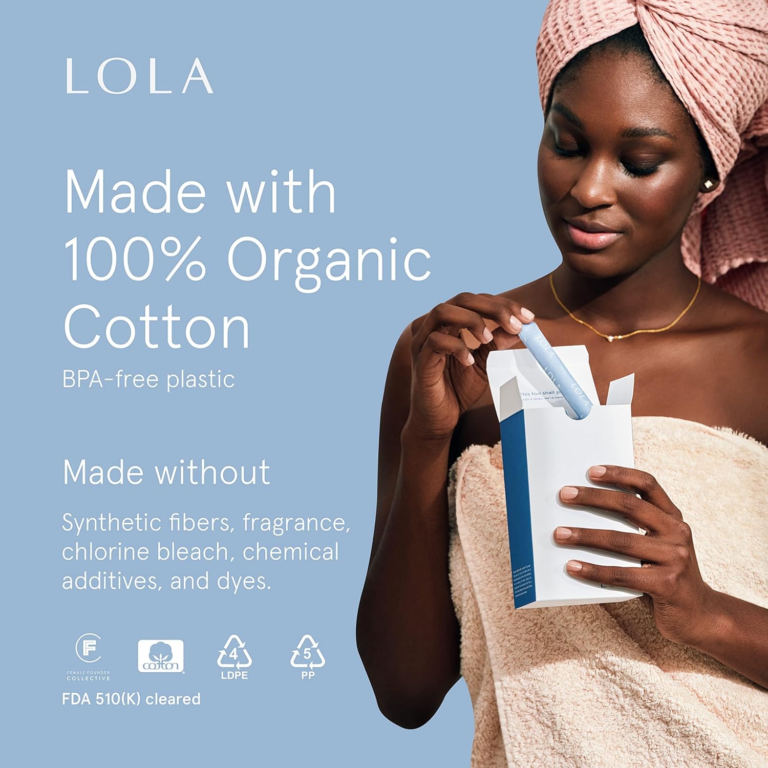 - 100% Organic Cotton Tampons: Finally, tampons with nothing to hide. LOLA Compact Plastic Applicator Tampons are made with naturally absorbent organic cotton for powerful protection every day of your period. FSA and HSA eligible.