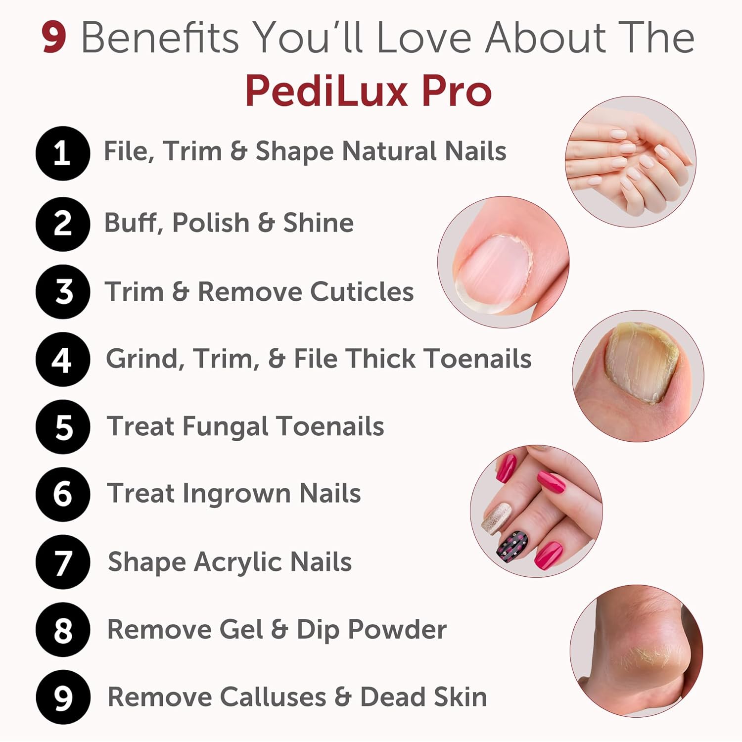 PediLux Pro Professional Manicure Pedicure Kit, Cordless Electric Nail File Drill Set, Thick Toenail Grinder, Toe Nail Dremel Tools, Filer, Buffer, Sander, Remove Cuticles, Callus for Women & Men