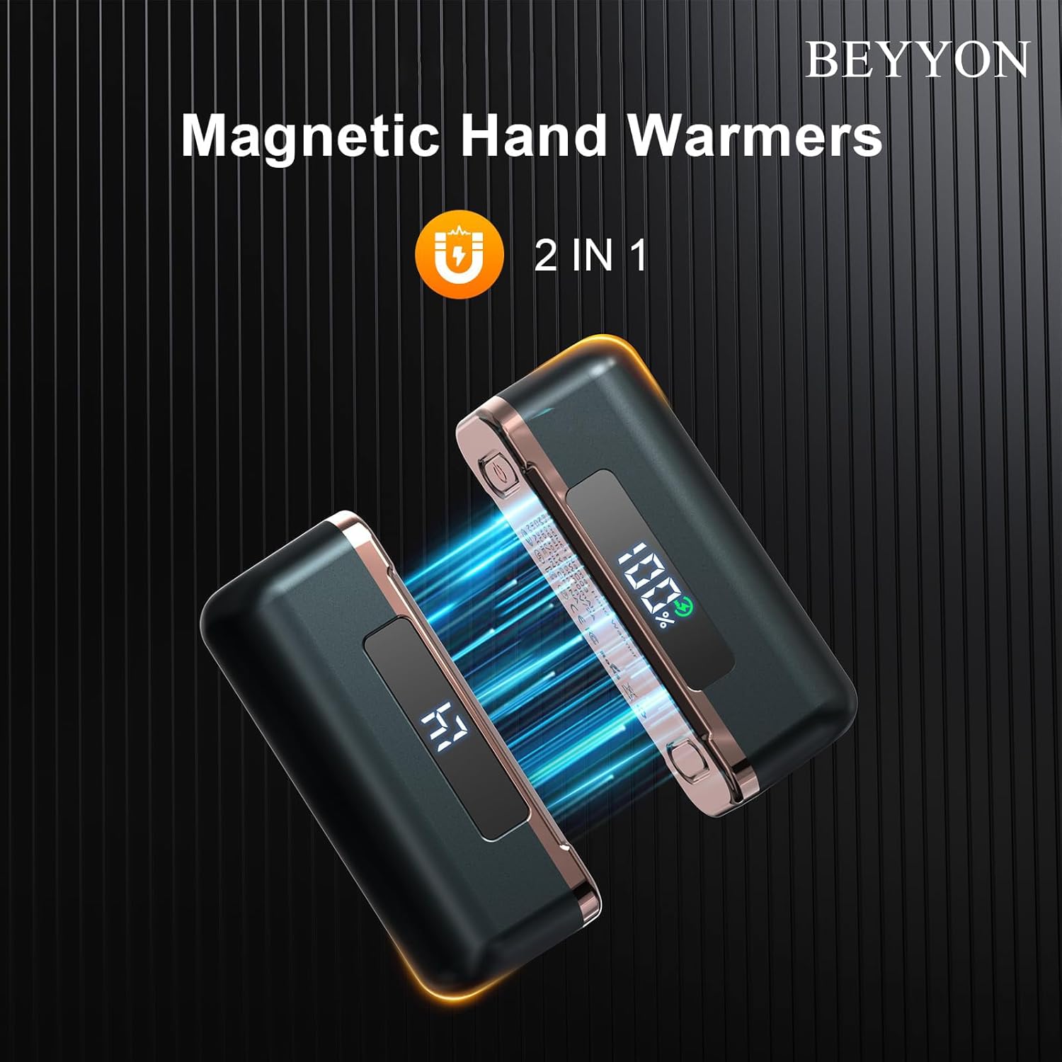 BEYYON Hand Warmers Rechargeable - Magnetic Electric Hand Warmer 2 Pack, 4 Levels Heat Up to 131℉ with LED Display, Portable Reusable Pocket Heater for Raynauds, Golf, Camping, Men, Women