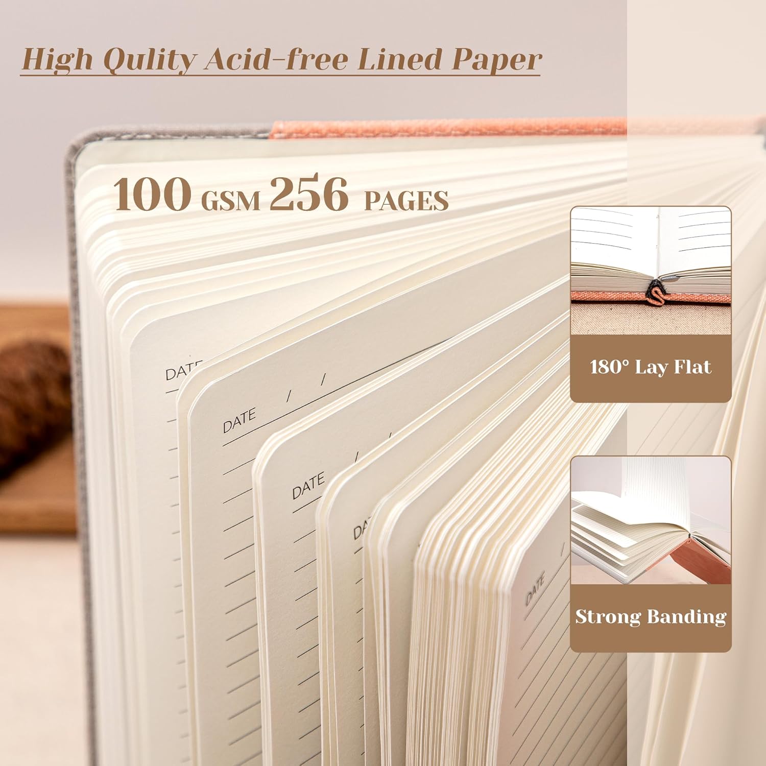 - Premium Quality Paper - This lined journal has 100 GSM 256 Pages acid-free paper. Premium paper can prevent ink bleed, ghosting and shadows while protecting your eyes. Writing with A5 CAGIE Journal, let inspiration flow freely through each page