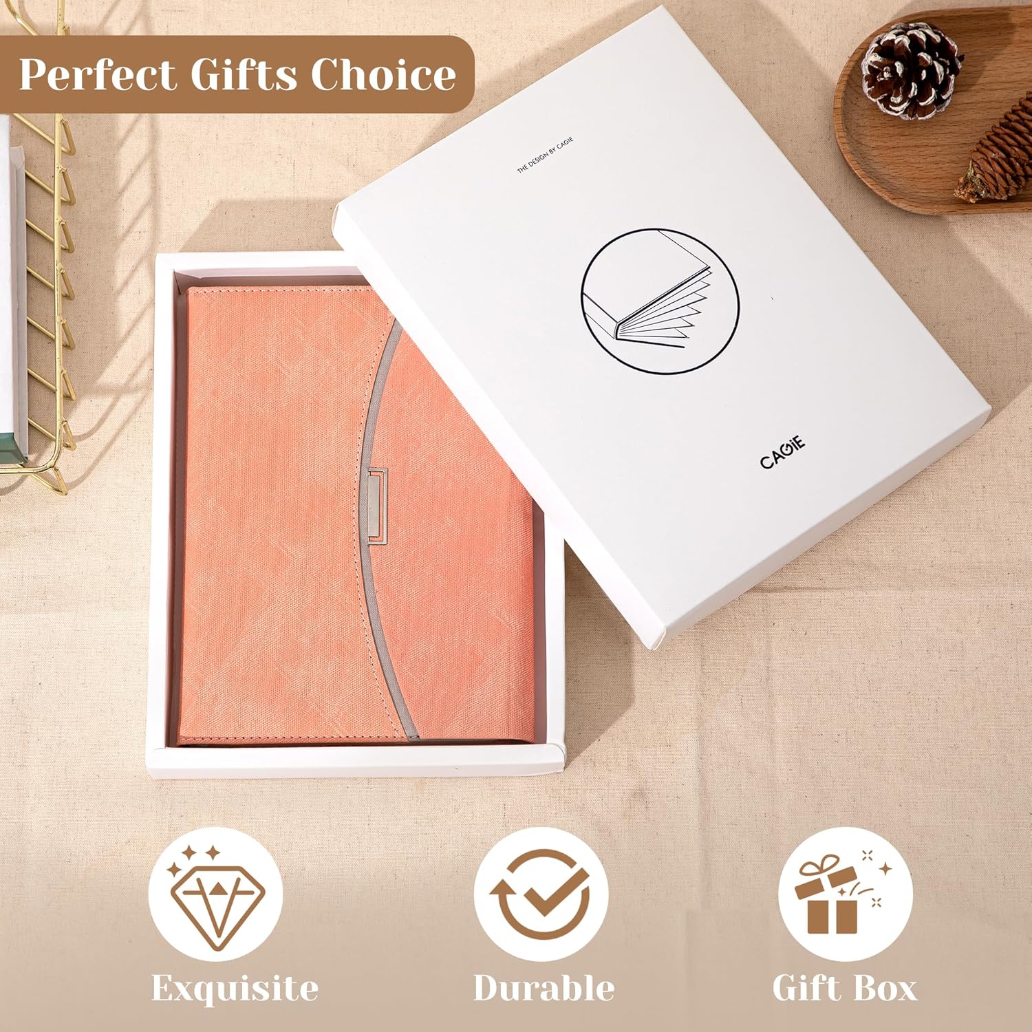 CAGIE Journal Notebook for Women with Magnetic Flap Closure, 256 Pages 100 GSM Elegant Lined Journals for Writing, A5 Hardcover Journal for Note Taking, Gifts Diary for Women, 5.9x8.5In, Pink