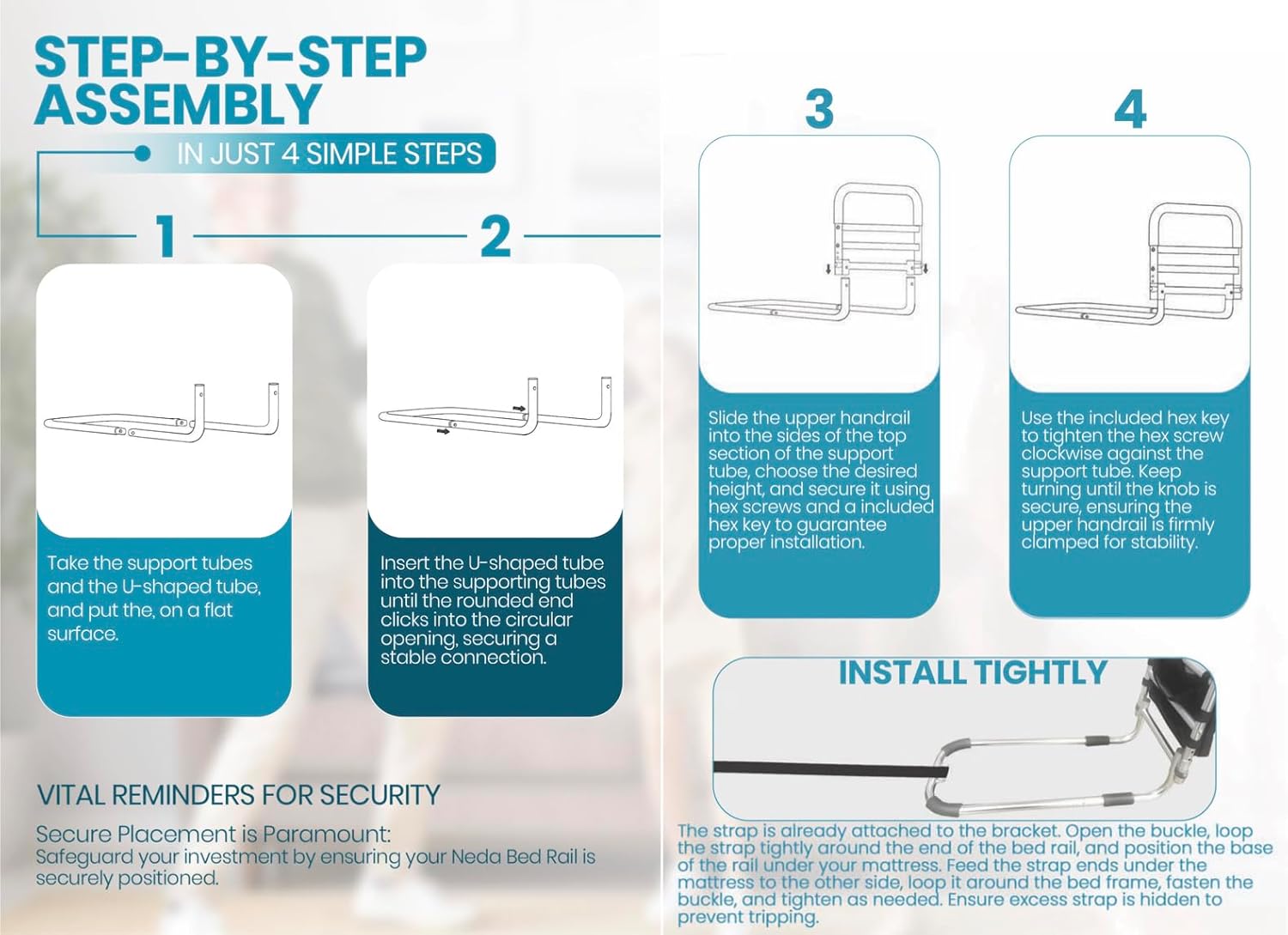 - Neda’s Promise: We are committed to your satisfaction. Our bed assist bar for seniors is designed for long-lasting durability and strong support, providing safety and comfort. Trust Neda for reliable, quality bed rails that prioritize your happiness and security.