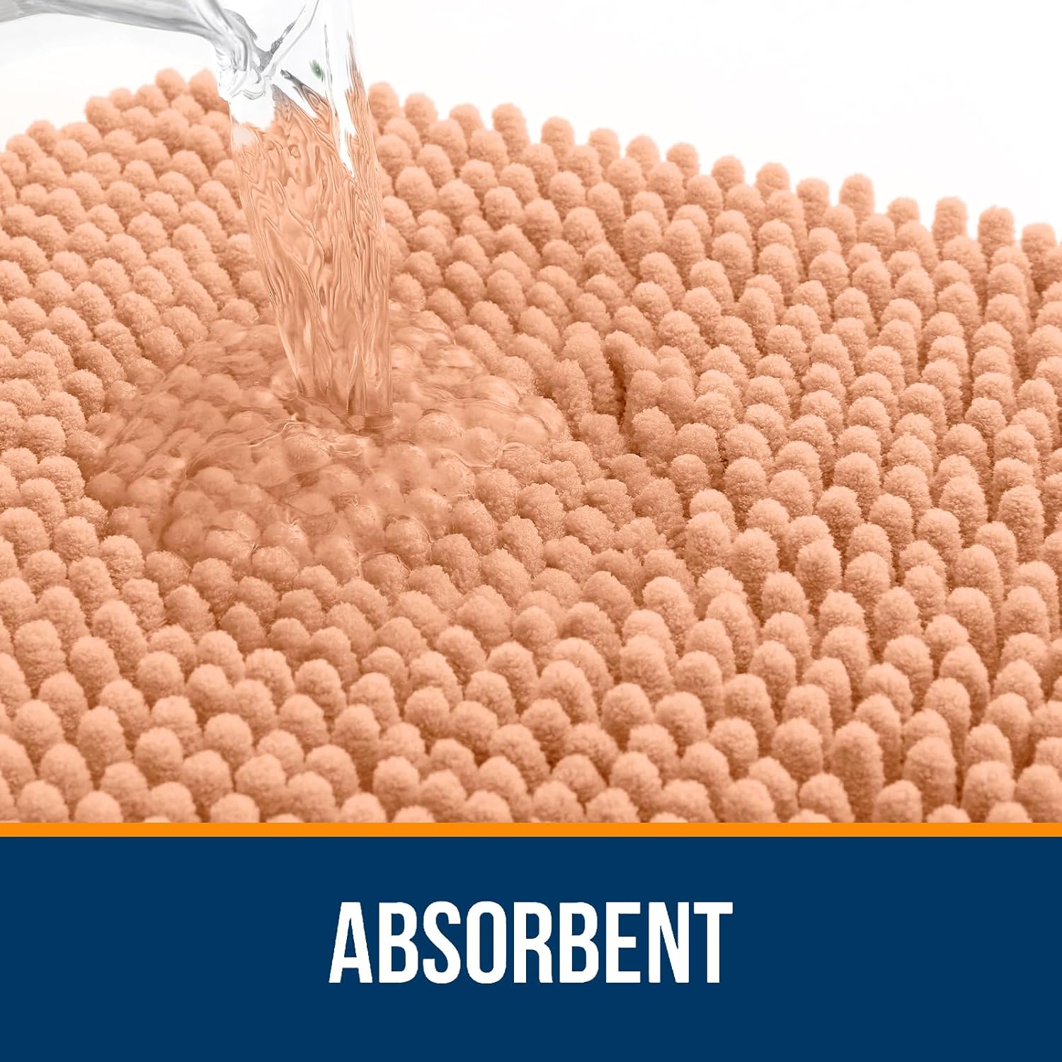 OLANLY Toilet Rugs U-Shaped 24x20, Extra Soft Absorbent Chenille Contour Bathroom Rugs for Toilet, Dry Quickly, Machine Washable, Non-Slip Bath Mat, Peach