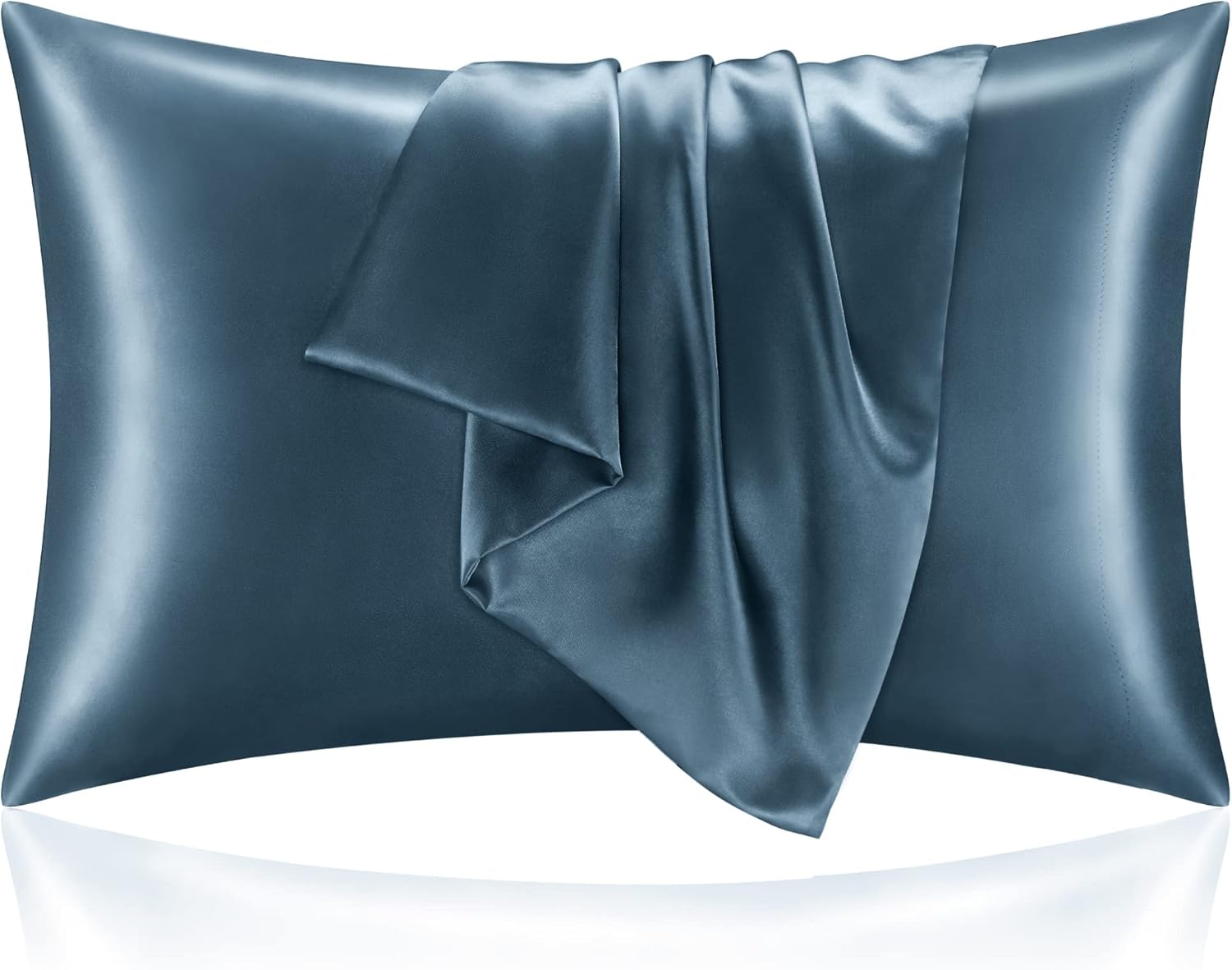 BEDELITE Satin Pillowcase for Hair and Skin, Super Soft and Cooling Similar to Silk Pillow Cases 2 Pack with Envelope Closure, Gift for Women Men(20"x36" King Size, Bluesteel)