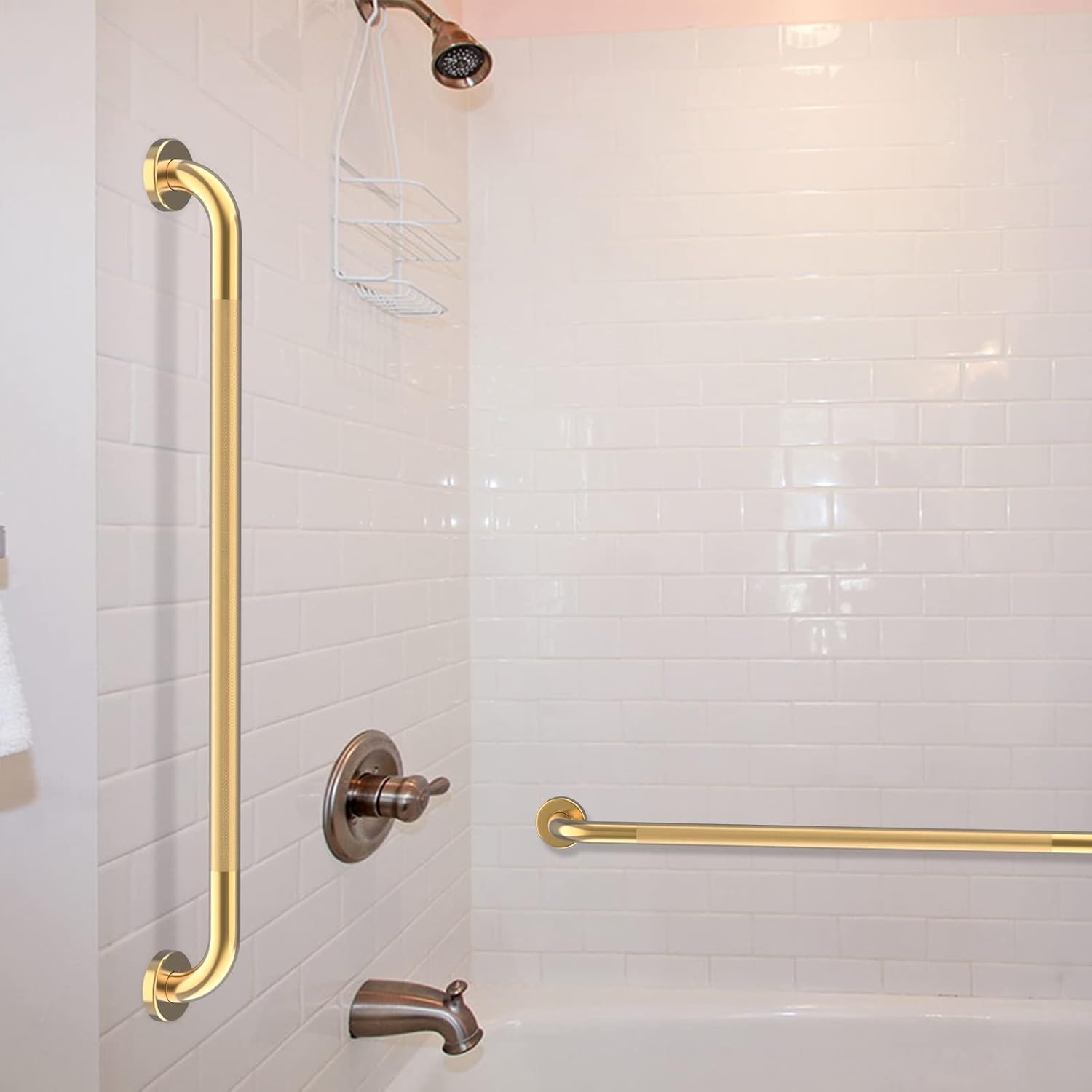 - Munzong 2 Pack 32 Inch Oil Rubbed Gold Stainless Steel Shower Grab Bar; the non slip knurled surface on middle is superior for safety when you have soapy hands and need to steady yourself