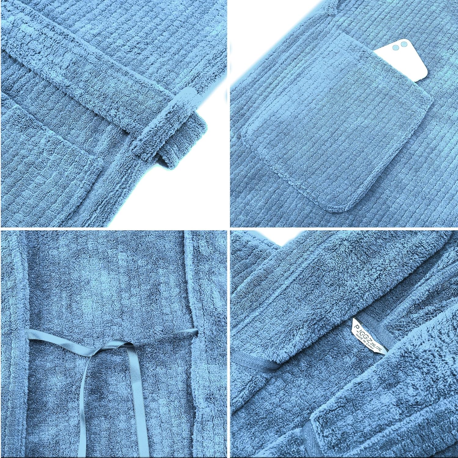• HOODED BATHROBES WITH POCKETS: The hood is perfect for keeping the head warm during the chilly mornings. Slip front pockets are perfect for storing all your stuff with convenience, or just for keeping your hands warm in this bathrobe