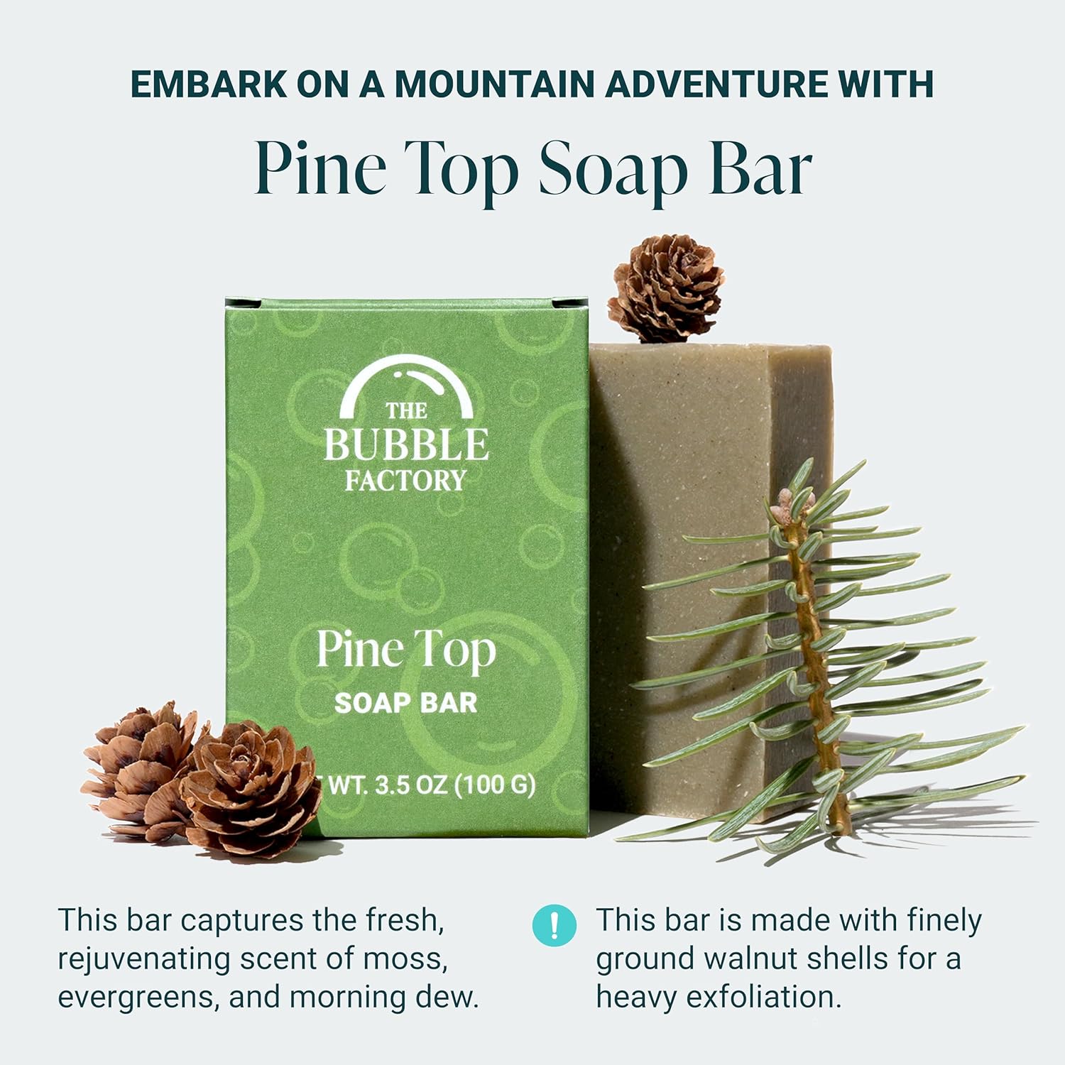 - PINE TOP SCENTED SOAP BAR: These soap bars capture the restorative aroma of rich moss, earthy evergreens, and the freshness of morning dew. Crafted with finely ground walnut shells, it offers a heavy exfoliating experience with a frothy, foaming lather. Enjoy a gritty good clean that leaves your skin feeling soft and refreshed