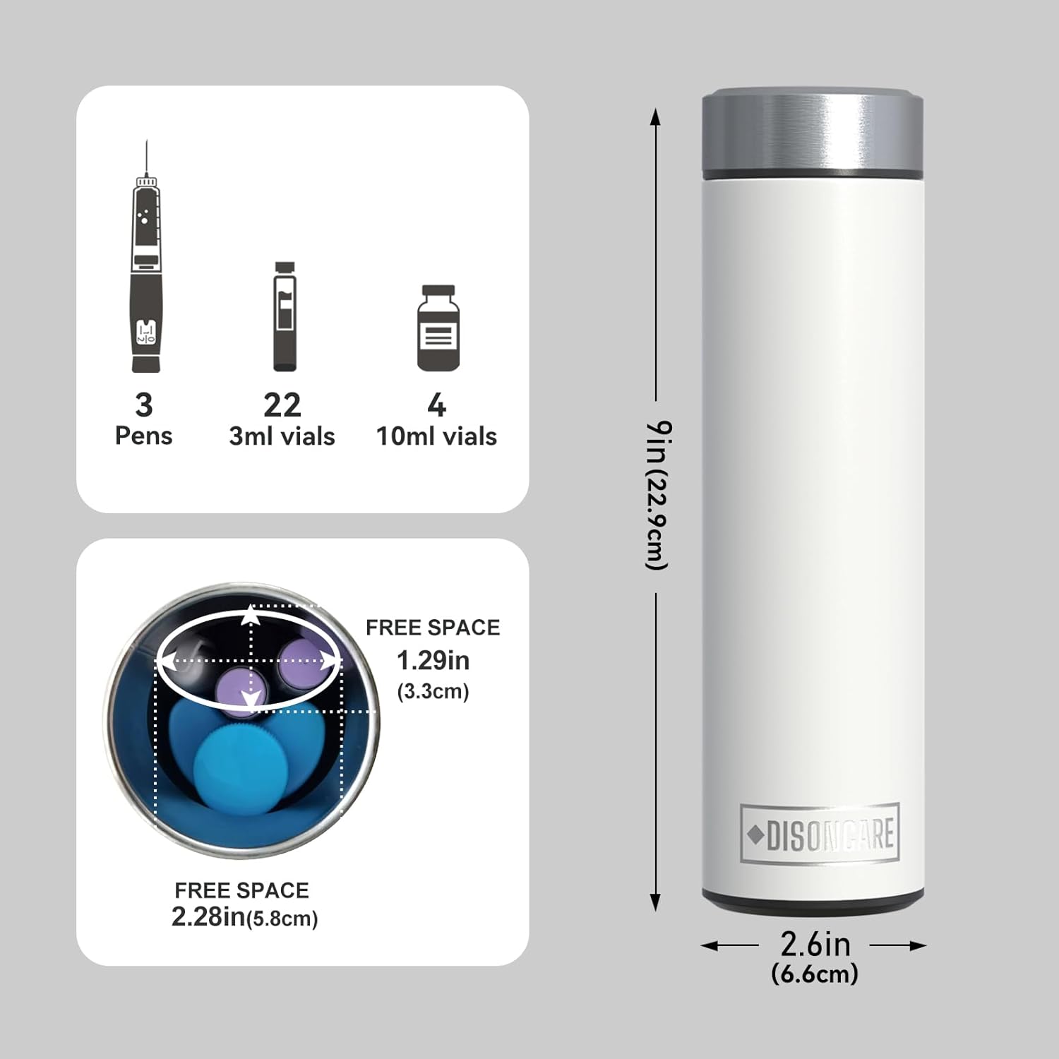 DISONCARE Odyssey 60H 3 Insulin Pens Cooler Travel Case Medication Cooler for Travel TSA Approved Diabetic Insulina EpiPen Carry Case Medicine Bag Ice Pack with Medical Tag (Polar White)