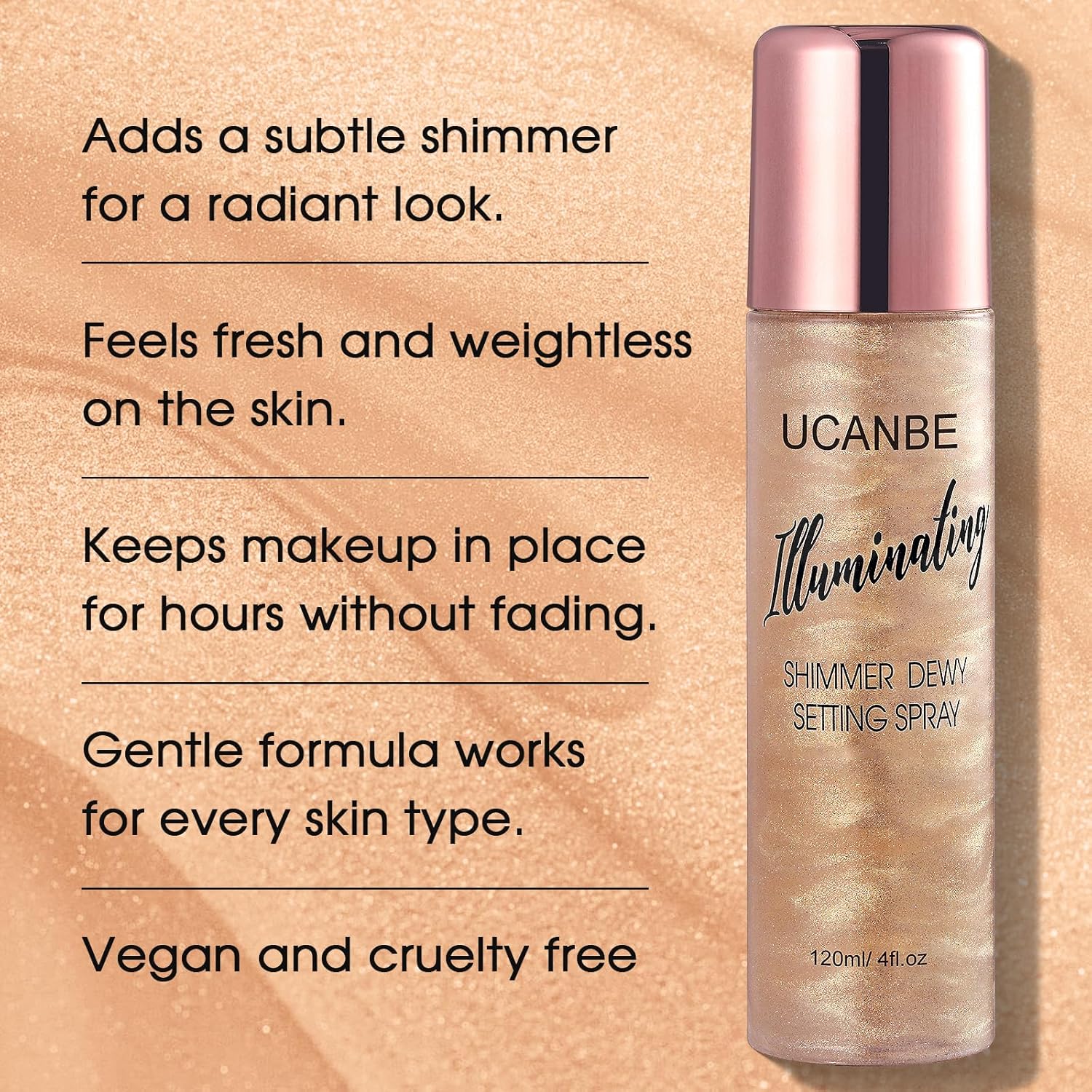 UCANBE Shimmer Dewy Setting Spray – Glowing + Makeup Setting Spray 2 in 1 Lightweight Formula for a Radiant Glow,Long-Lasting Face Mist for Face Body, 4 Fl Oz #Champagne