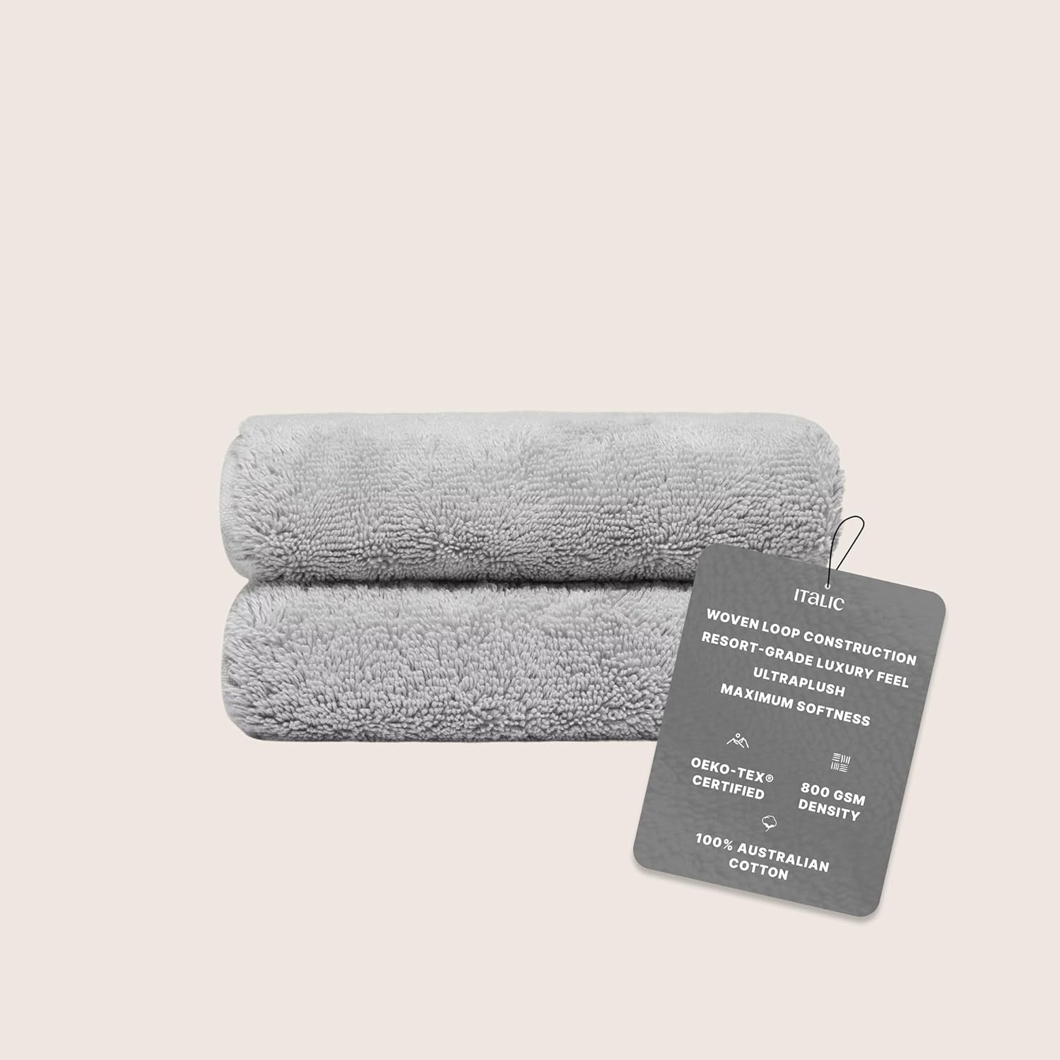 Italic Ultraplush 100% Australian Cotton Hand Towels - Set of 2 Luxury Hand Towels, Ultra Soft and Highly Absorbent 800GSM Towels for Bathroom,Shower, Hotel, and Spa (Light Gray)