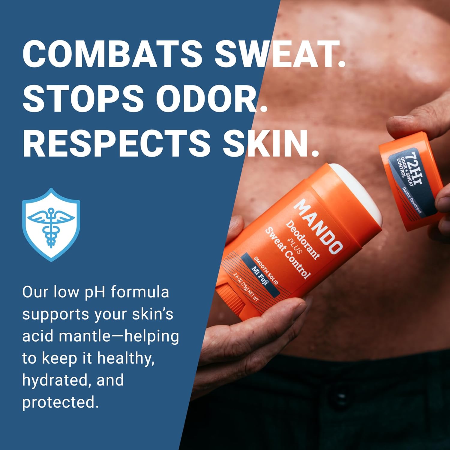 Mando Antiperspirant Deodorant Sweat and Odor Control for Men – Extra Strength Smooth Solid Stick – 72 Hour Performance – Baking Soda Free, Skin Safe – 2.6 oz – Mt Fuji – Pack of 2